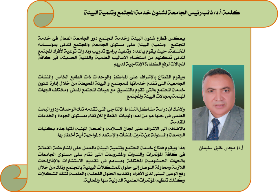 اهلا ومرحبا بكم فى الموقع الرسمى لقطاع شئون خدمة المجتمع وتنمية البيئة