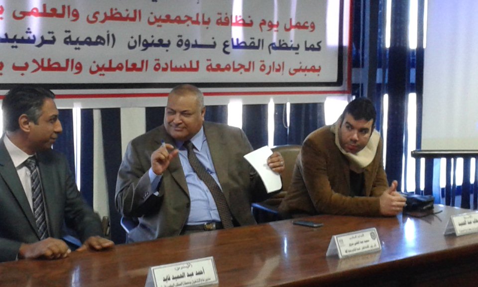 قطاع شئون خدمة المجتمع وتنمية البيئة ندوة بعنوان ( أهمية ترشيد موردى المياة والطاقة )
