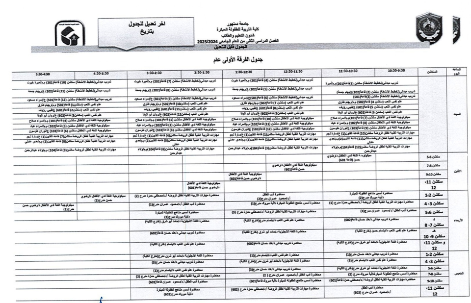 الجدول الدراسي للبرنامج العام الترم الثاني 2024-2025
