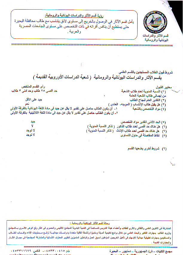 إعلان مهم لطلاب قسم الآثار والدراسات اليونانية والرومانية