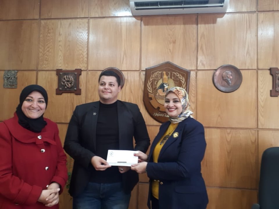 ومن الجدير بالذكر ان الفائز بالمركز الأول الطالبه /مني فتحي عبد القادر - الفرقه الرابعه بيولوجي