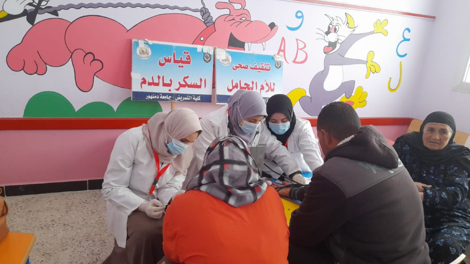 وقامت قافلة التمريض بالتثقيف والتوعية الصحية وكيفية الإكتشاف المبكر لسرطان الثدي وقياس السكر وضغط الدم ،