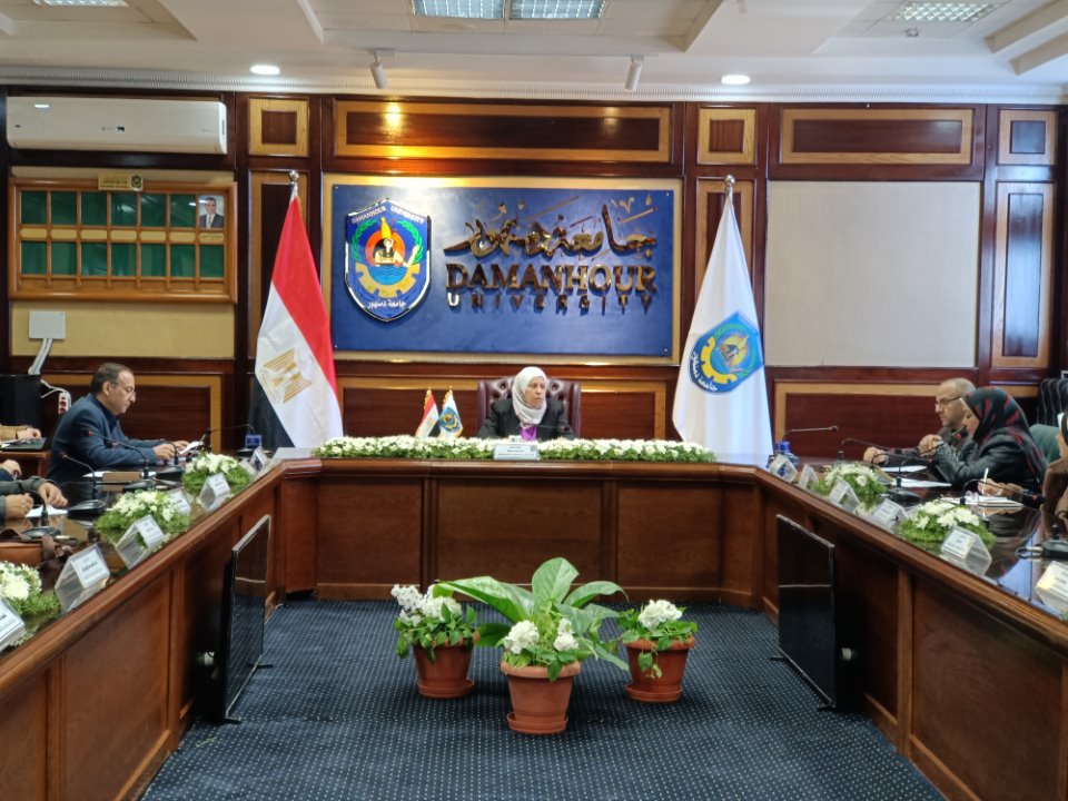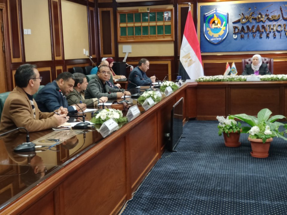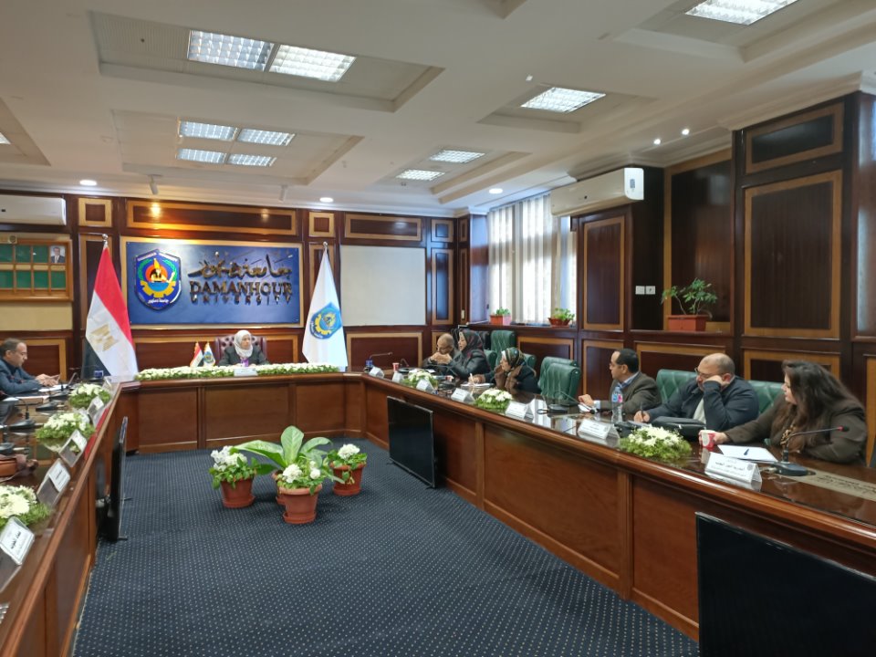 بقاعة الإجتماعات بإدارة الجامعة بحضور السادة وكلاء الكليات لشئون خدمة المجتمع وتنمية البيئة .