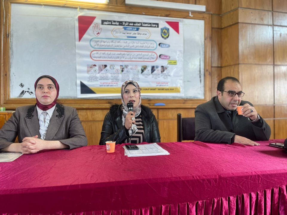 حاضر فيها الدكتورة/ اسلام فوزي أنس -أستاذ علم الاجتماع المساعد بكلية الآداب والمدير التنفيذي لوحدة مناهضة العنف ضد المرأة