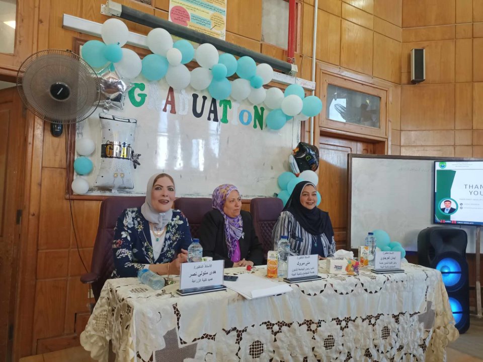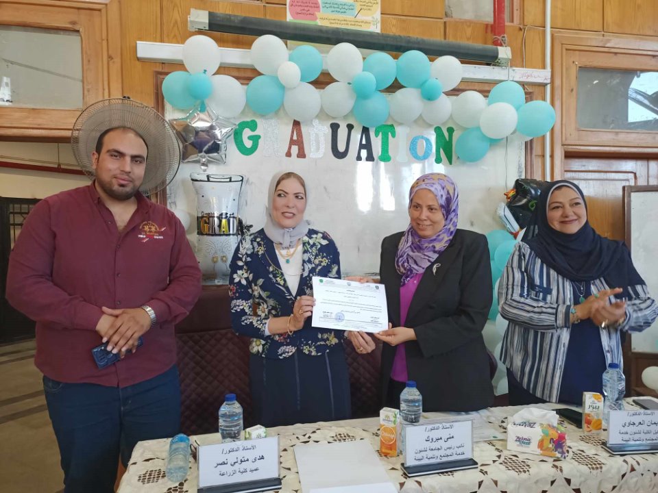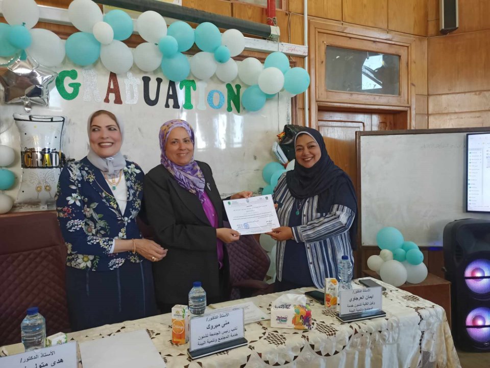 بحضور أ.د/ هدى متولى – عميد الكلية ، أ.د/ إيمان العرجاوى – وكيل الكلية لشئون خدمة المجتمع ، أ.د/ منى