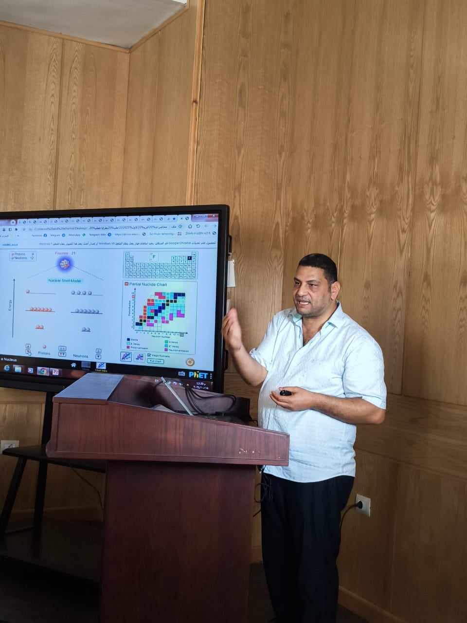 وأشار إلى أنواع الإشعاع ومخاطره وطرق الوقاية منه ، حيث تتمثل أكثر المصادر شيوعاً لتعرّض الإنسان للإشعاع الاصطناعي