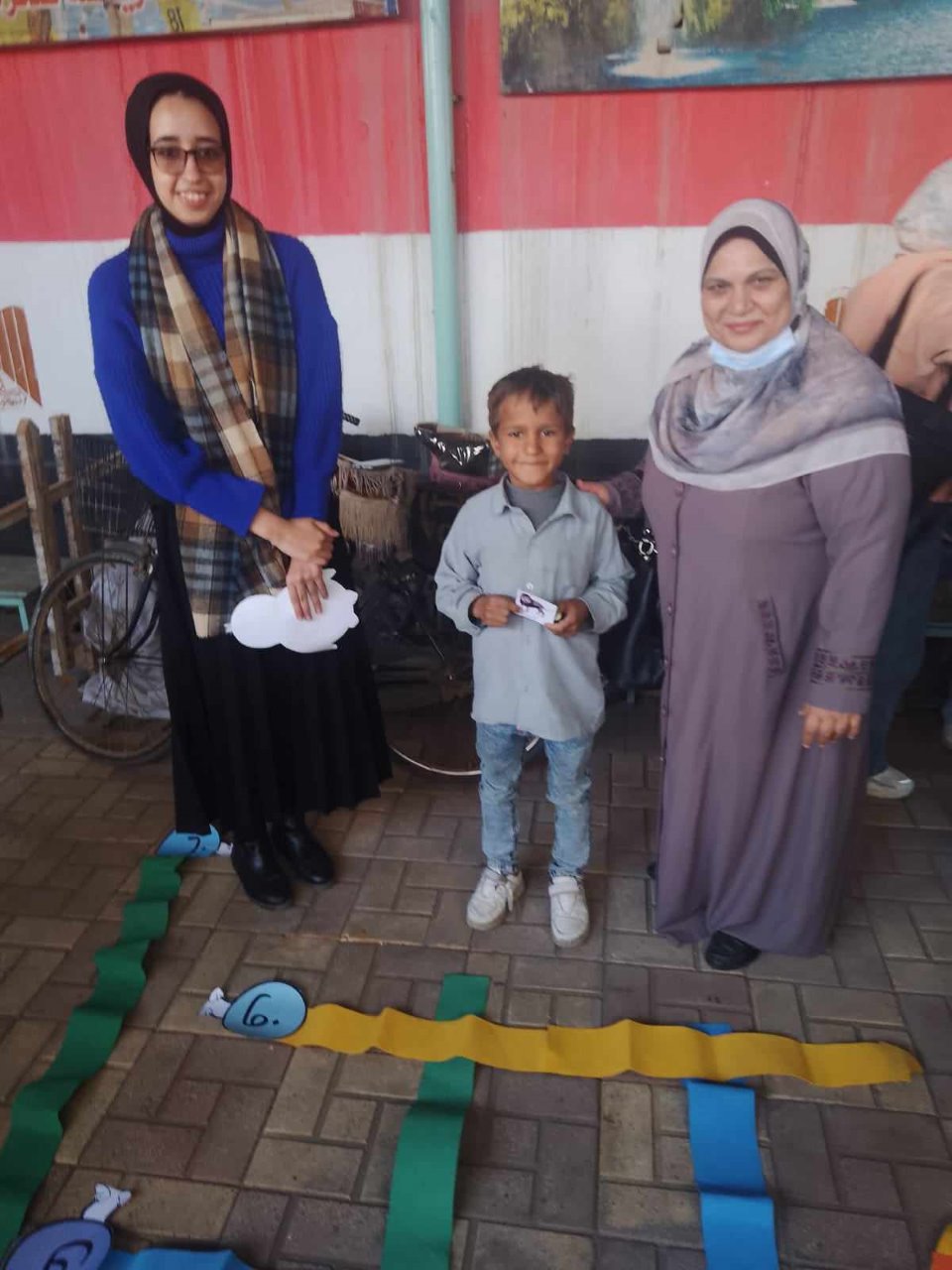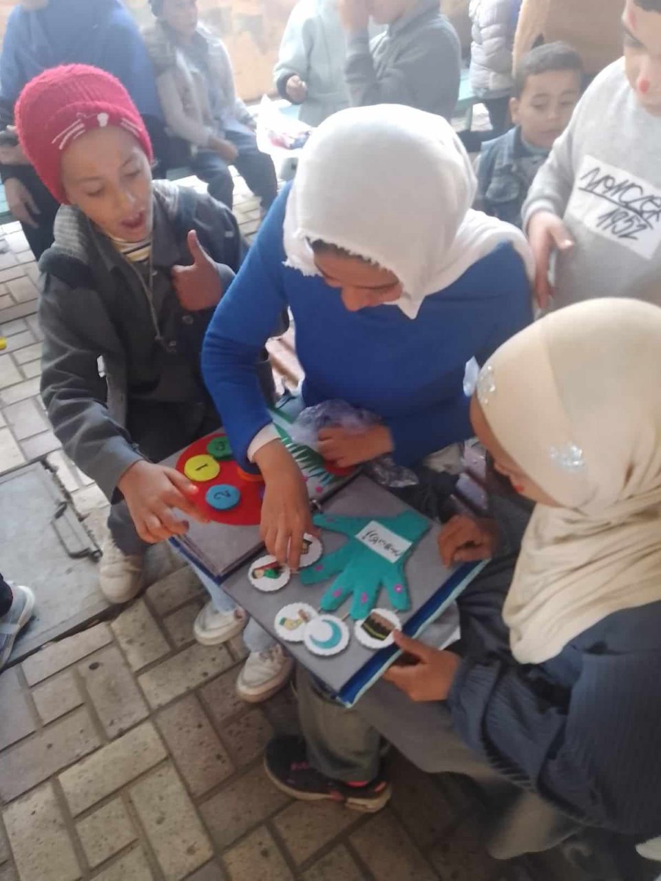 ورسم وتلوين ، وأنشطة حركية باللعب مع الأطفال بالمكعبات والعرائس القفازية ، بالإضافة إلى ألعاب حركية