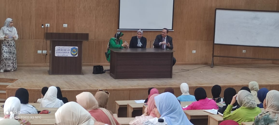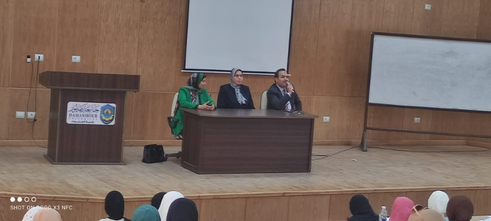 ، حاضرت فيها الدكتورة/ منى طاهر المدرس بالكلية، و350 من الطلاب.