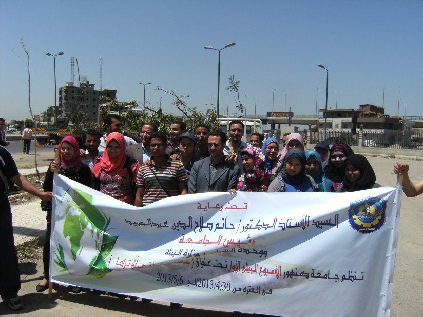 تحت رعاية أ.د / مجدى خليل سليمان نائب رئيس الجامعة لشئون خدمة المجتمع وتنمية البيئة تم إقامة الأسبوع البيئى الأول لجامعة دمنهور تحت شعار ( جامعة كما تحب أن تراها ) بالمشاركة بين الجامعة وجهاز شئون البيئة (( وحدة الشباب )) على أن يتم من خلاله عملية تشجير ونظافة وتوعية بيئية.