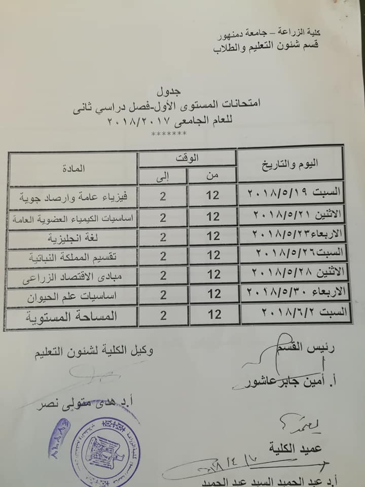 امتحانات المستوى الاول -فصل دراسي ثانى