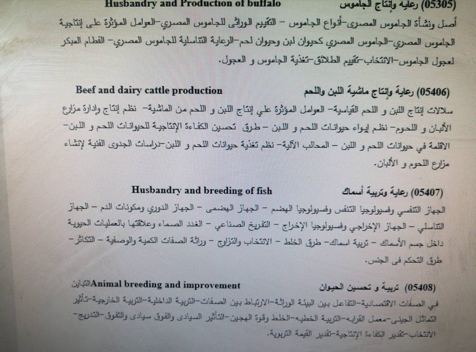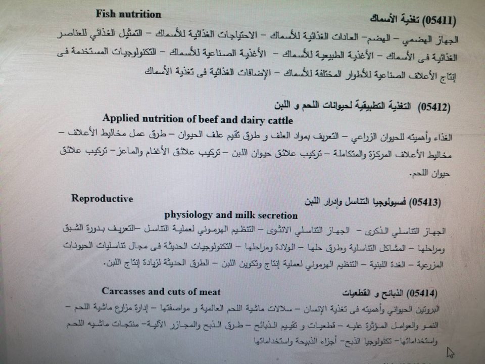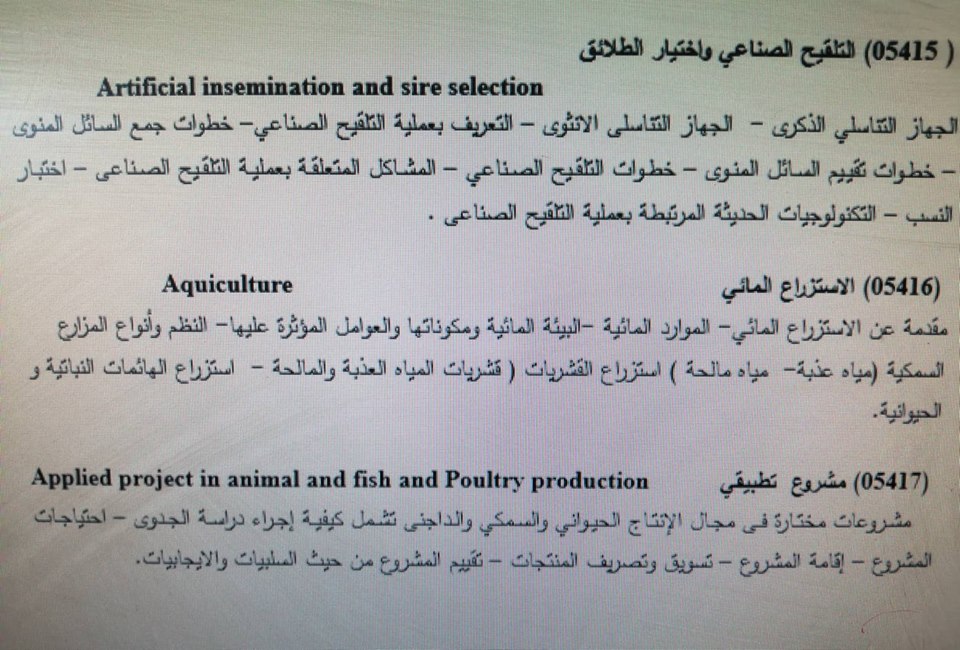 أولا :- مقررات الانتاج الحيوانى والسمكى