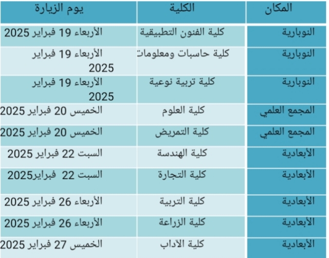 زيارات التقييم الذاتى والدعم الفنى لوحدات ضمان الجودة بالكليات 2019