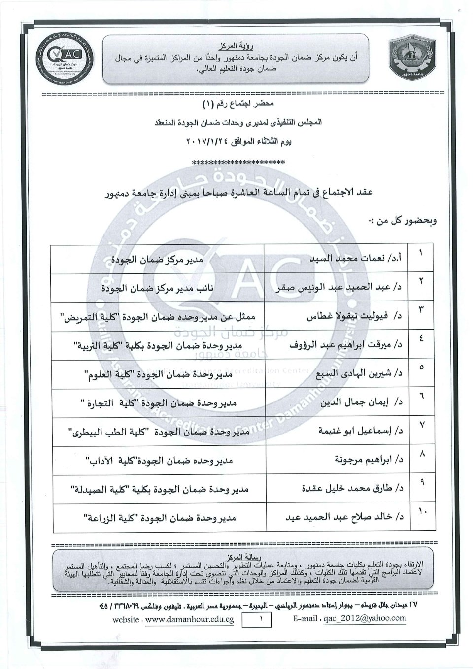 زيارات التقييم الذاتى والدعم الفنى لوحدات ضمان الجودة بالكليات 2017
