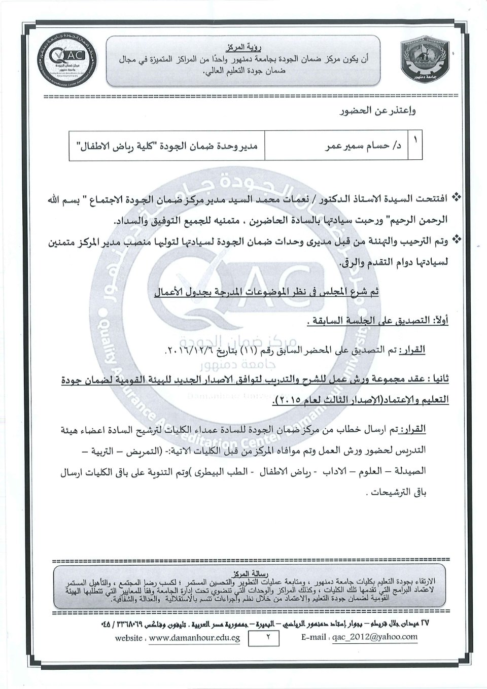 زيارات التقييم الذاتى لوحدات ضمان الجودة بالكليات 2016