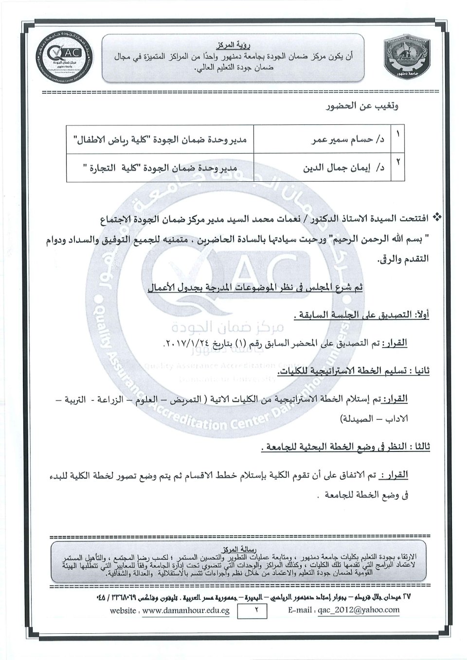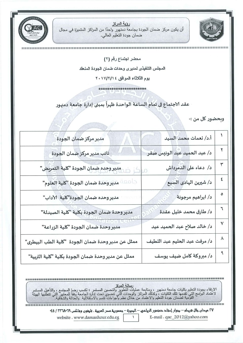 محضر إجتماع مركز ضمان الجودة فبراير 2017 م