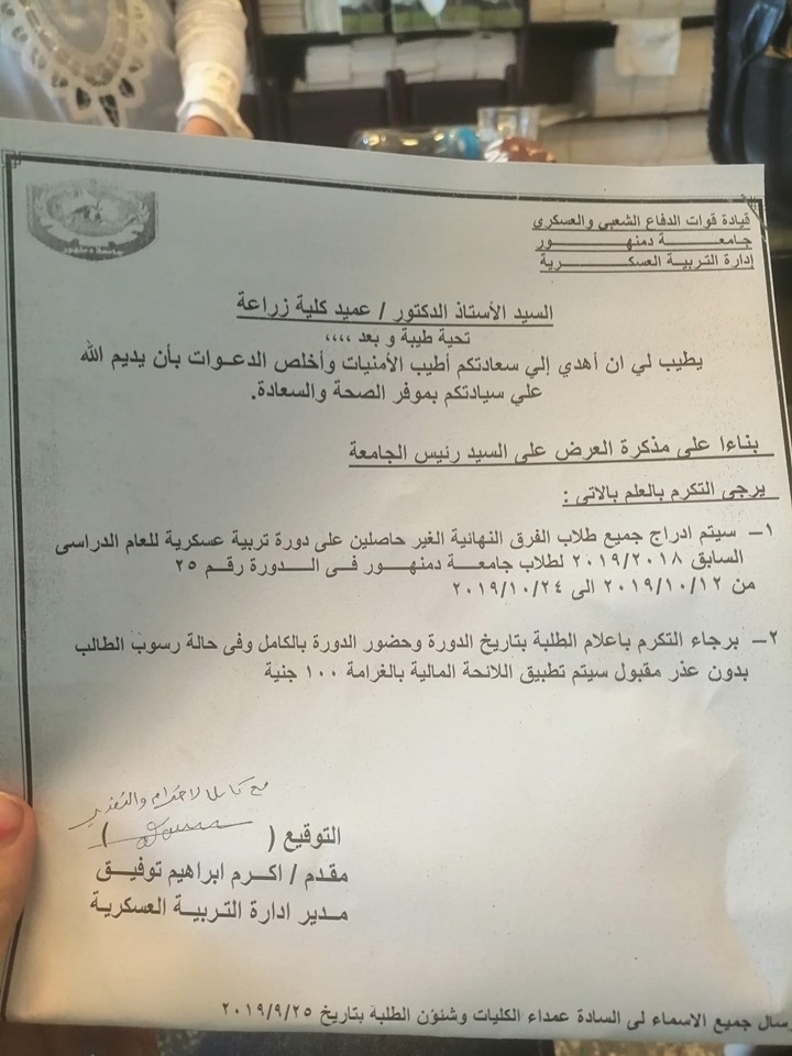 تم اعتماد جدول الترم الصيفي لعام 2018/2019 لجميع فرق الكلية السيد الأستاذ الدكتور/ عبد الحميد السيد عبد الحميد عميد كلية الزراعة و الأستاذة الدكتورة/ هدى متولى نصر وكيلة الكلية لشئون التعليم والطلاب والتى من المقرر ان تبدا الدراسة يوم الأثنين الموافق 2/9/2019