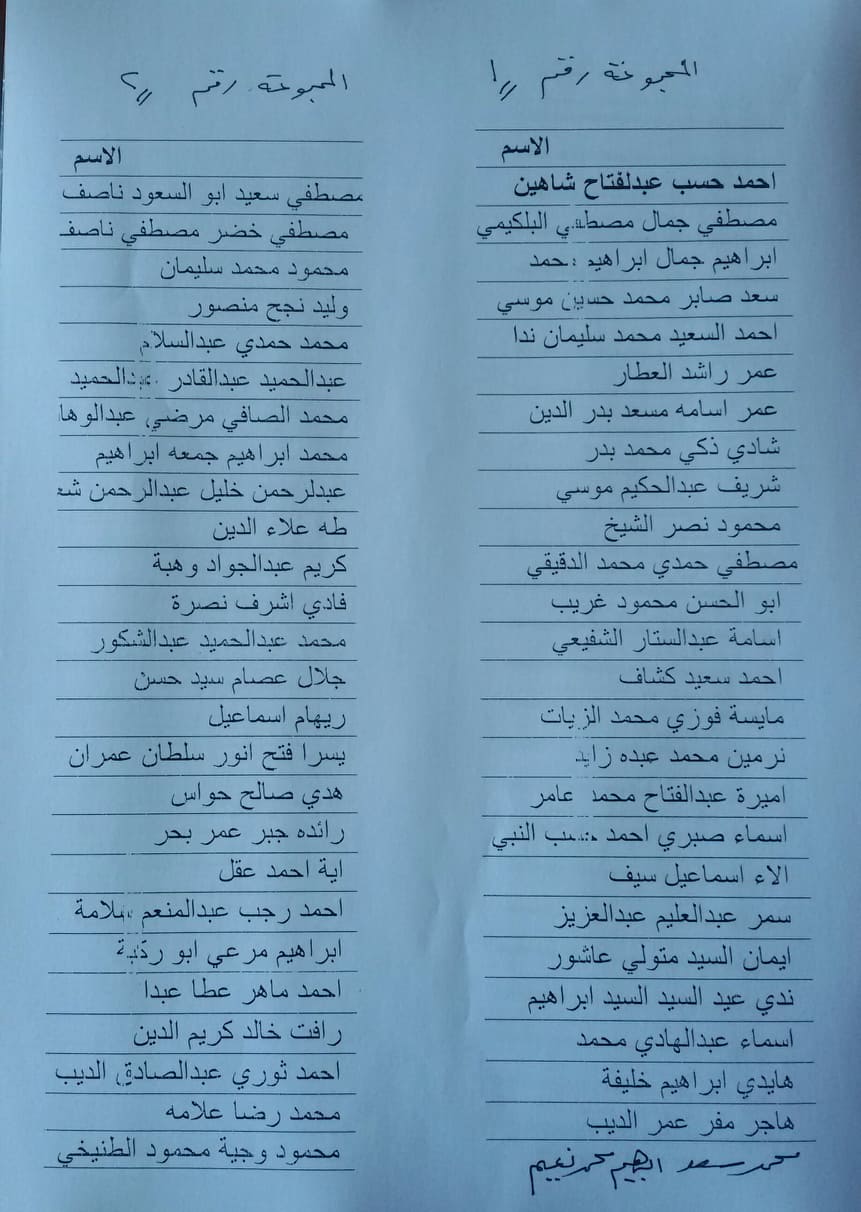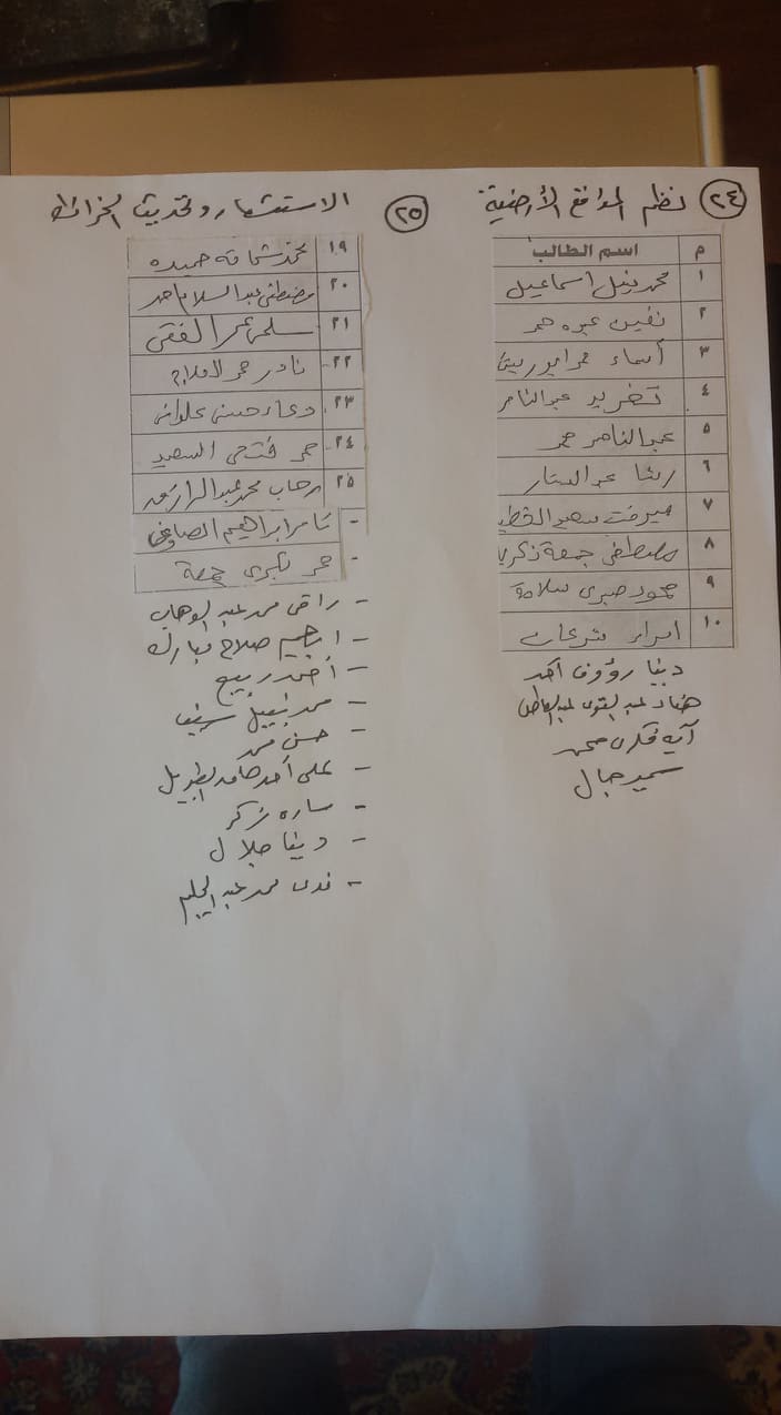 على الطلاب الذين لم ترد أسمائهم سرعة مراجعة أ.د / ماجد شعلة