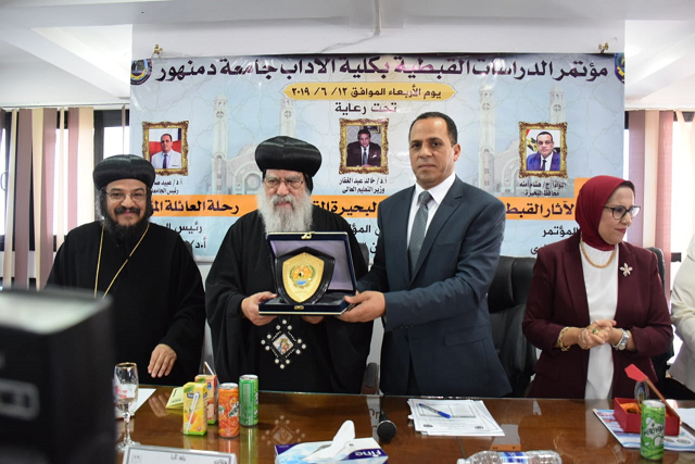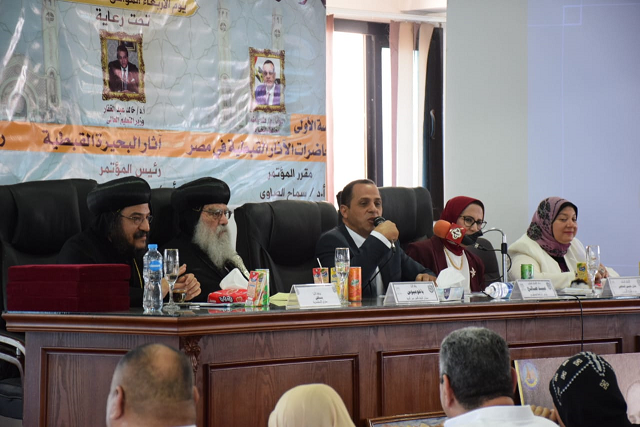 أ.د/ عبيد صالح رئيس الجامعة ونيافة الأنبا باخوميوس مطرا ن البحيرة يفتتحان مؤتمر الدراسات القبطية .