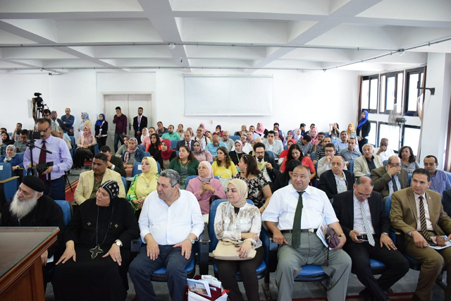 والسادة النواب والعمداء والوكلاء وحشد كبير من الطلاب بجامعة دمنهور .