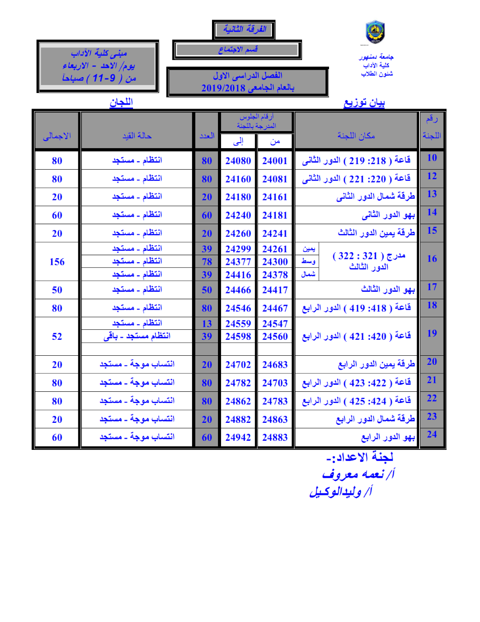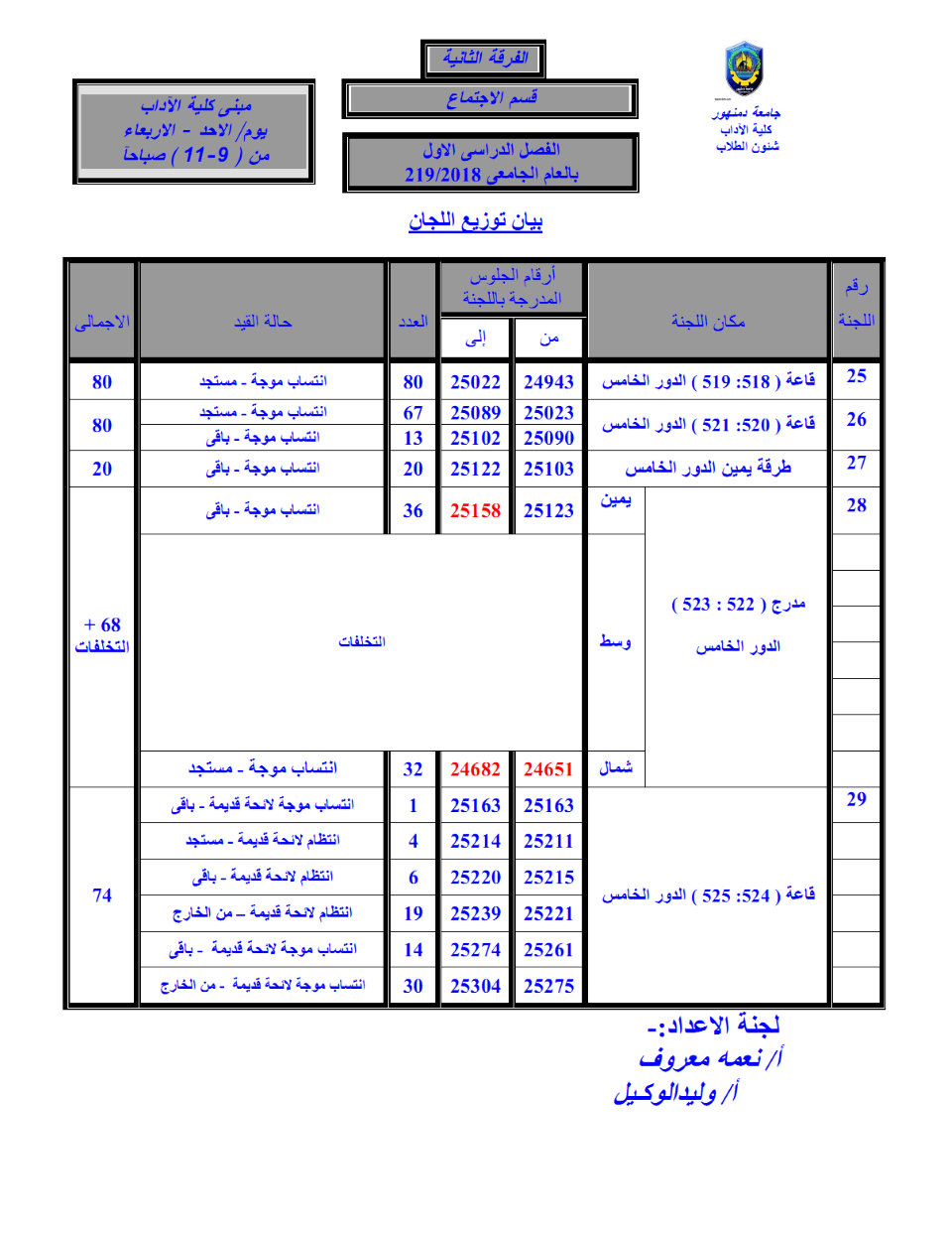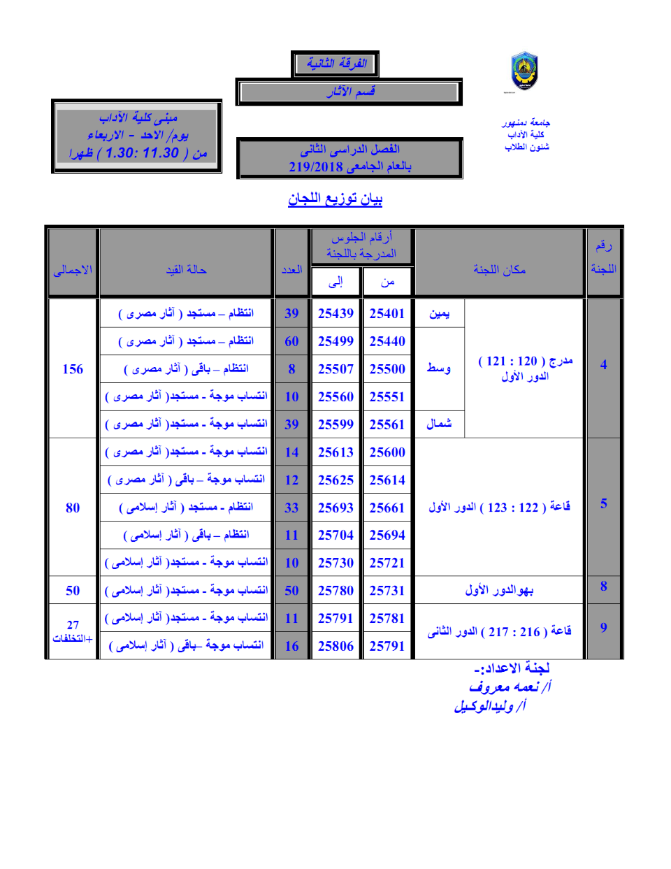 أرقام الجلوس للفصل الدراسى الأول للعام الجامعى 2025/2024