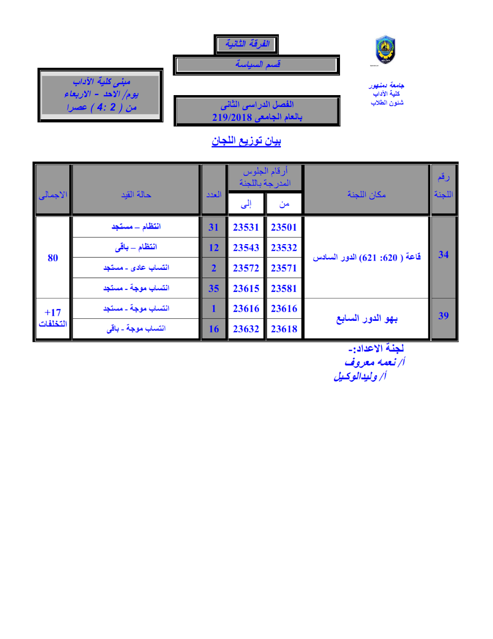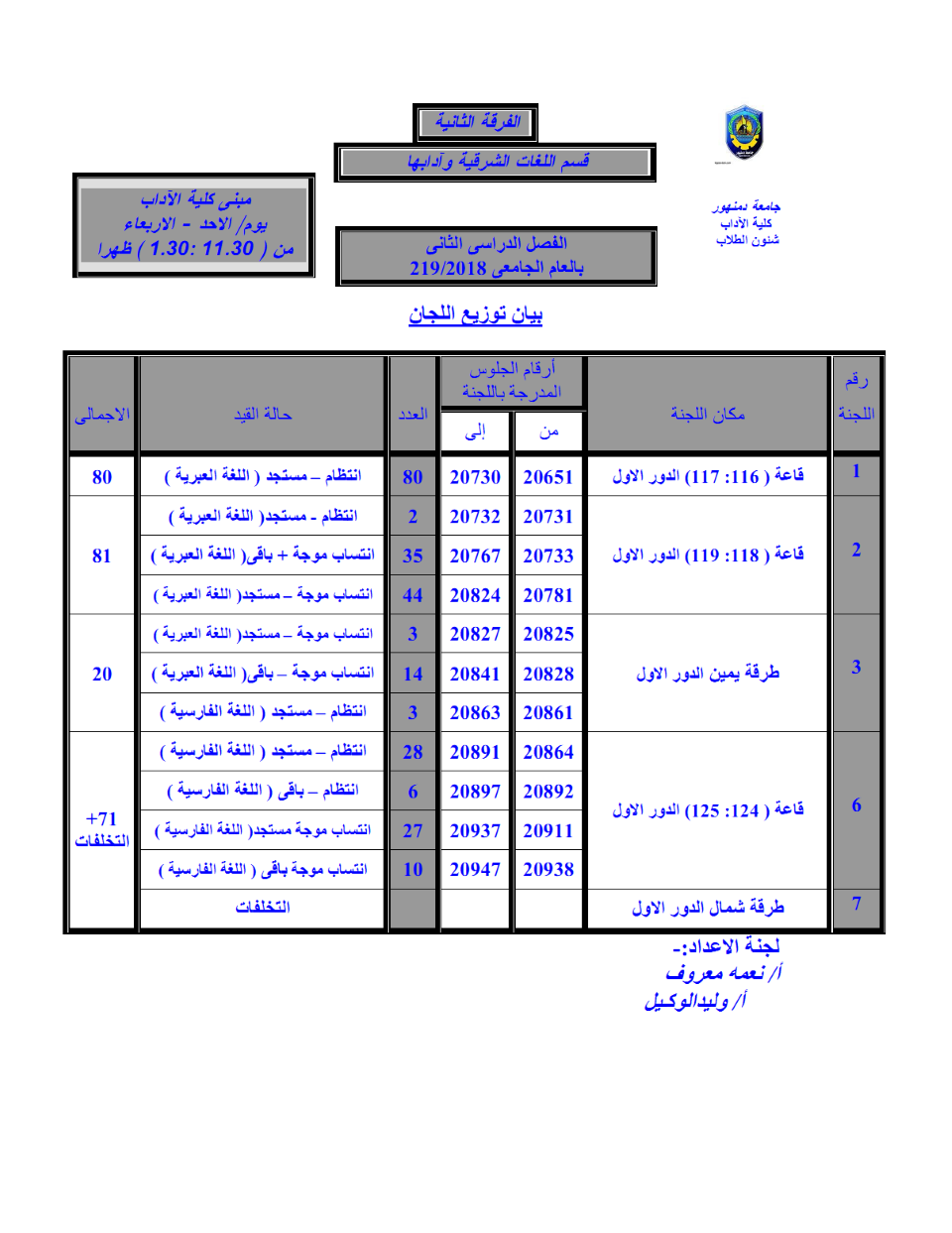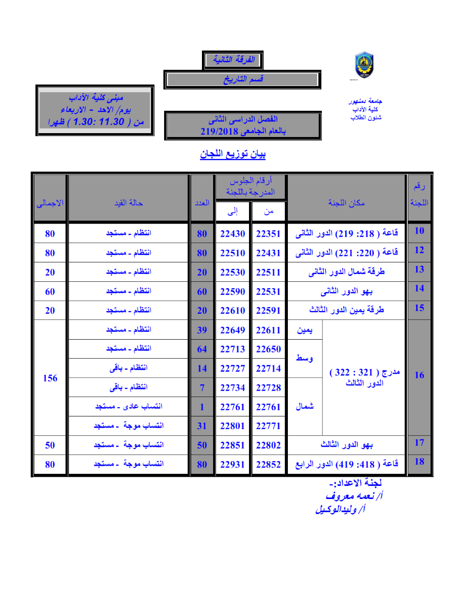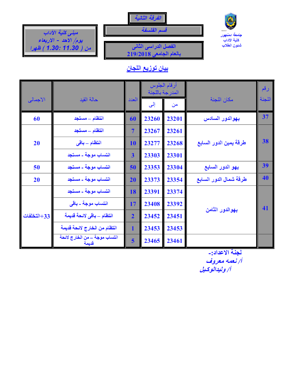 أرقام الجلوس للفصل الدراسى الأول للعام الجامعى 2025/2024
