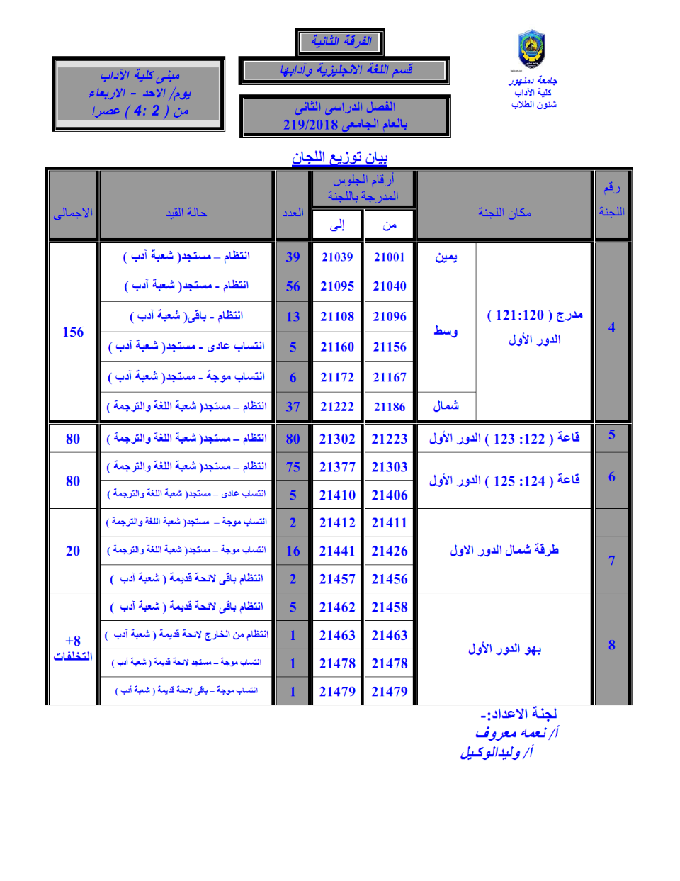 اعتماد نتيجة الفرقة الثانية والثالثة والرابعة لقسم اللغة الانجليزية للعام الجامعى 2025/2024