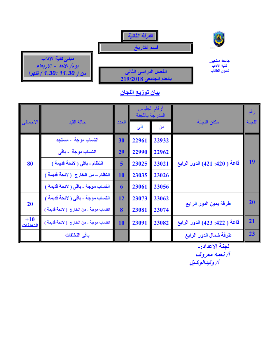 اعتماد نتيجة الفرقة الرابعة لقسم التاريخ فصل دراسي ثانى 2024