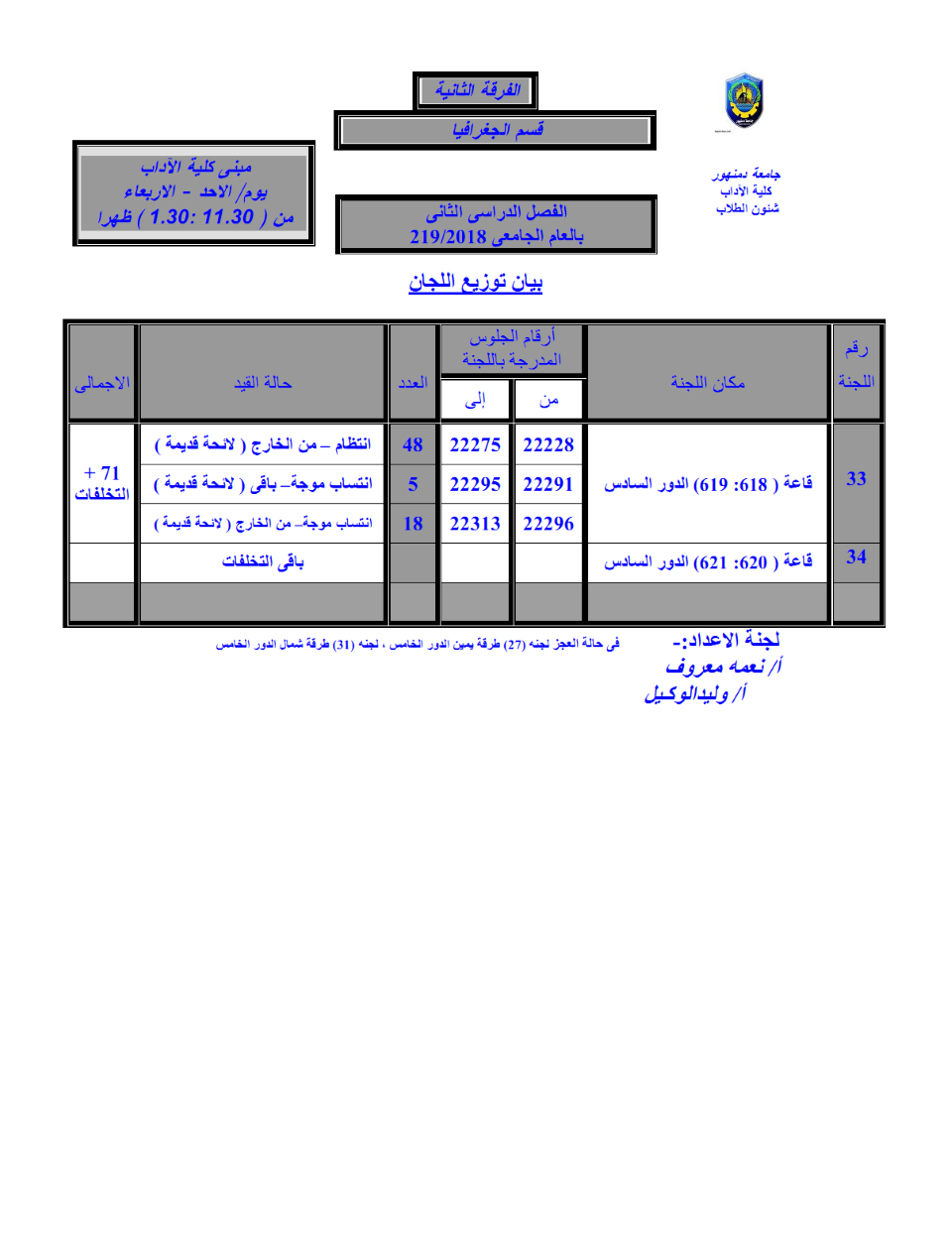 اعتماد نتيجة الفرقة الأولى لقسم الجغرافيا فصل دراسي ثانى 2024