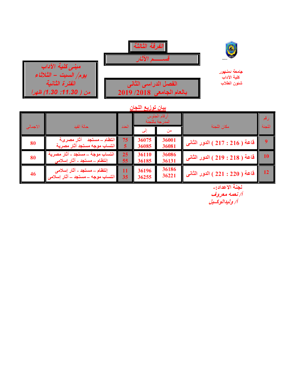 اعتماد نتيجة الفرقة الأولى لقسم الآثــــار فصل دراسي أول 2025