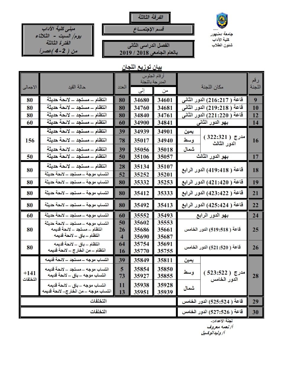 جدول محاضرات الفصل الدراسى الثانى لجميع أقسام الكلية للعام الجامعى 2023/2022