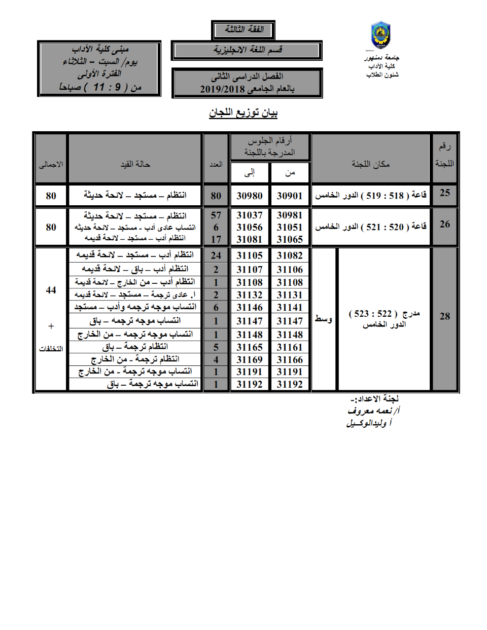 اعتماد نتيجة الفرقة الثانية والثالثة والرابعة لقسم اللغة الانجليزية للعام الجامعى 2025/2024