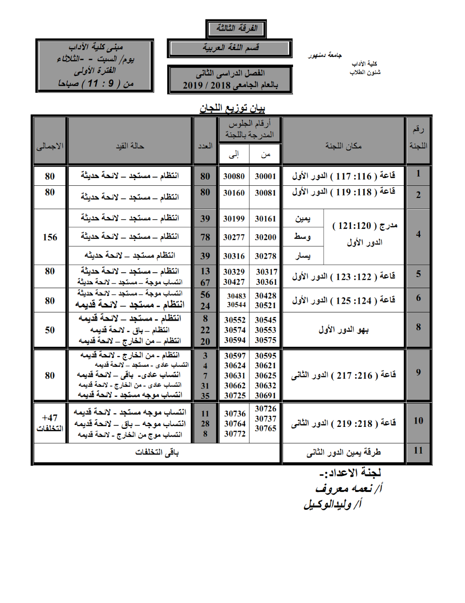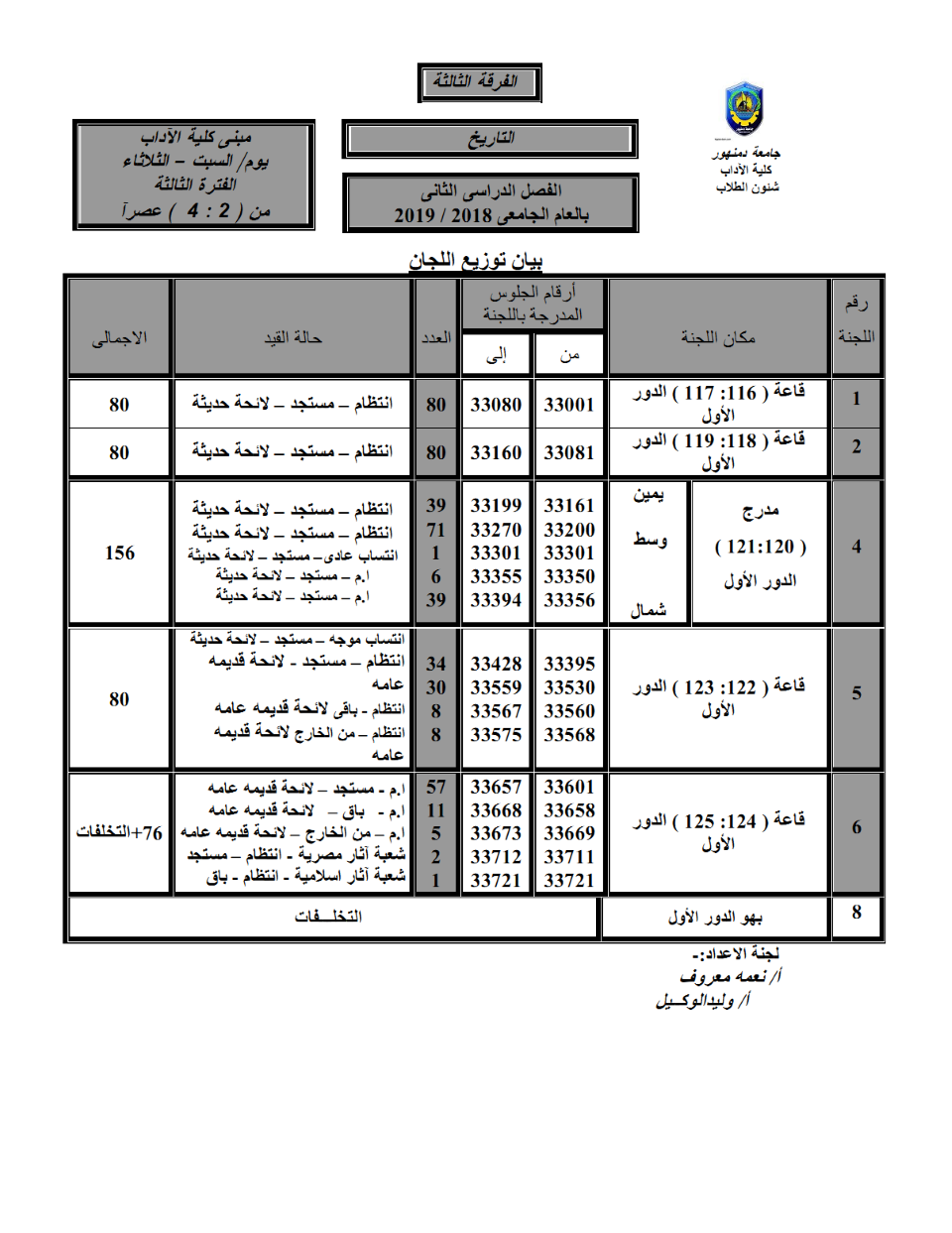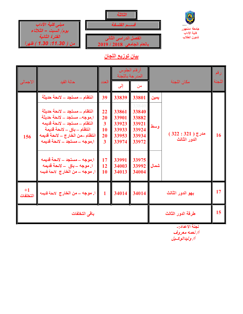 أرقام الجلوس للفصل الدراسى الأول للعام الجامعى 2025/2024