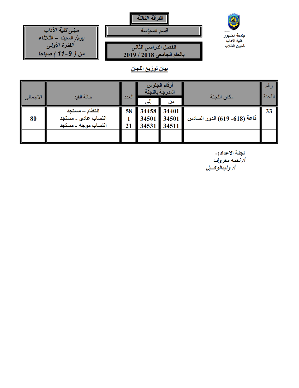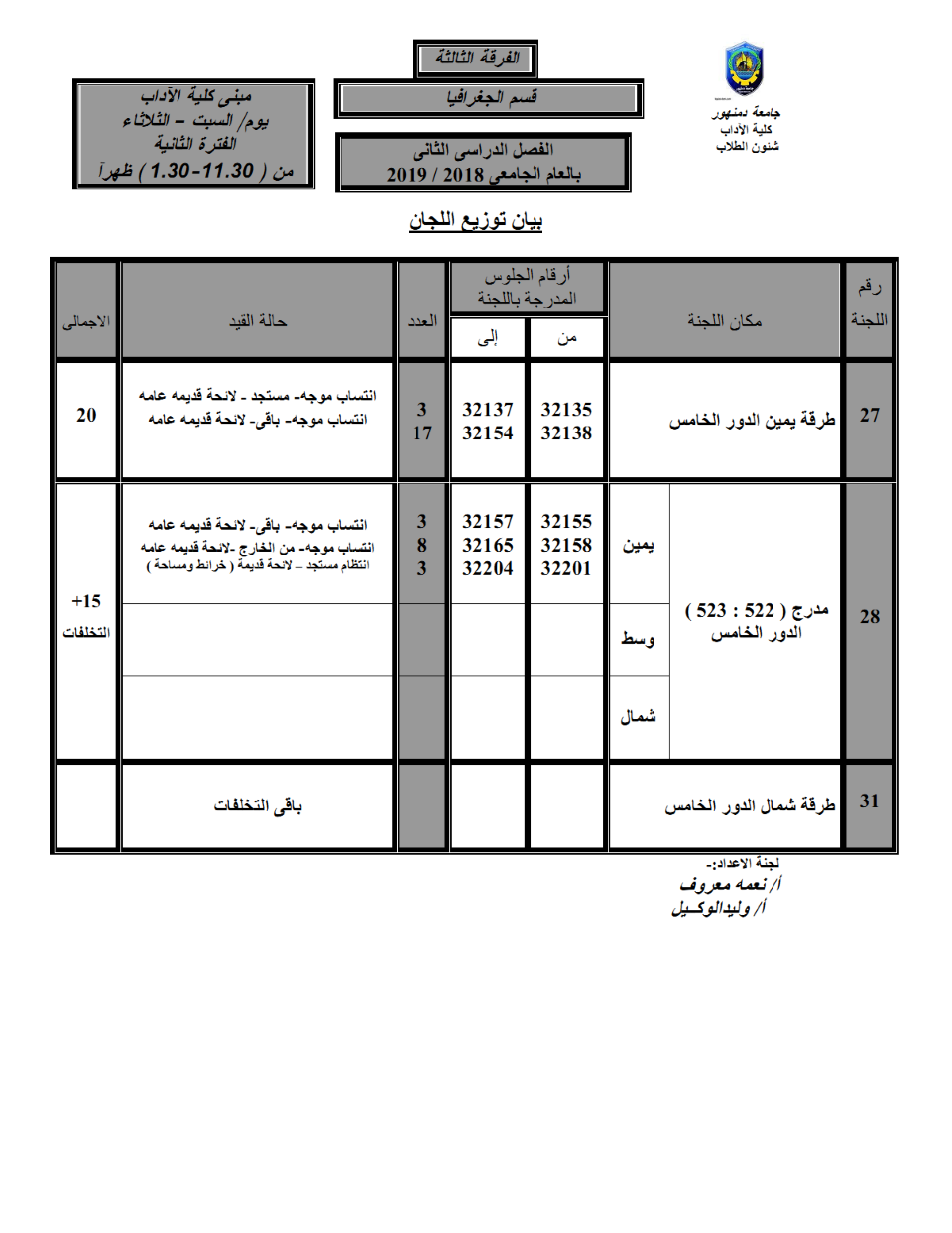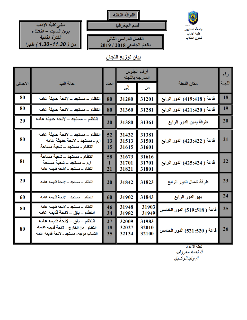 أرقام الجلوس للفصل الدراسى الأول للعام الجامعى 2025/2024