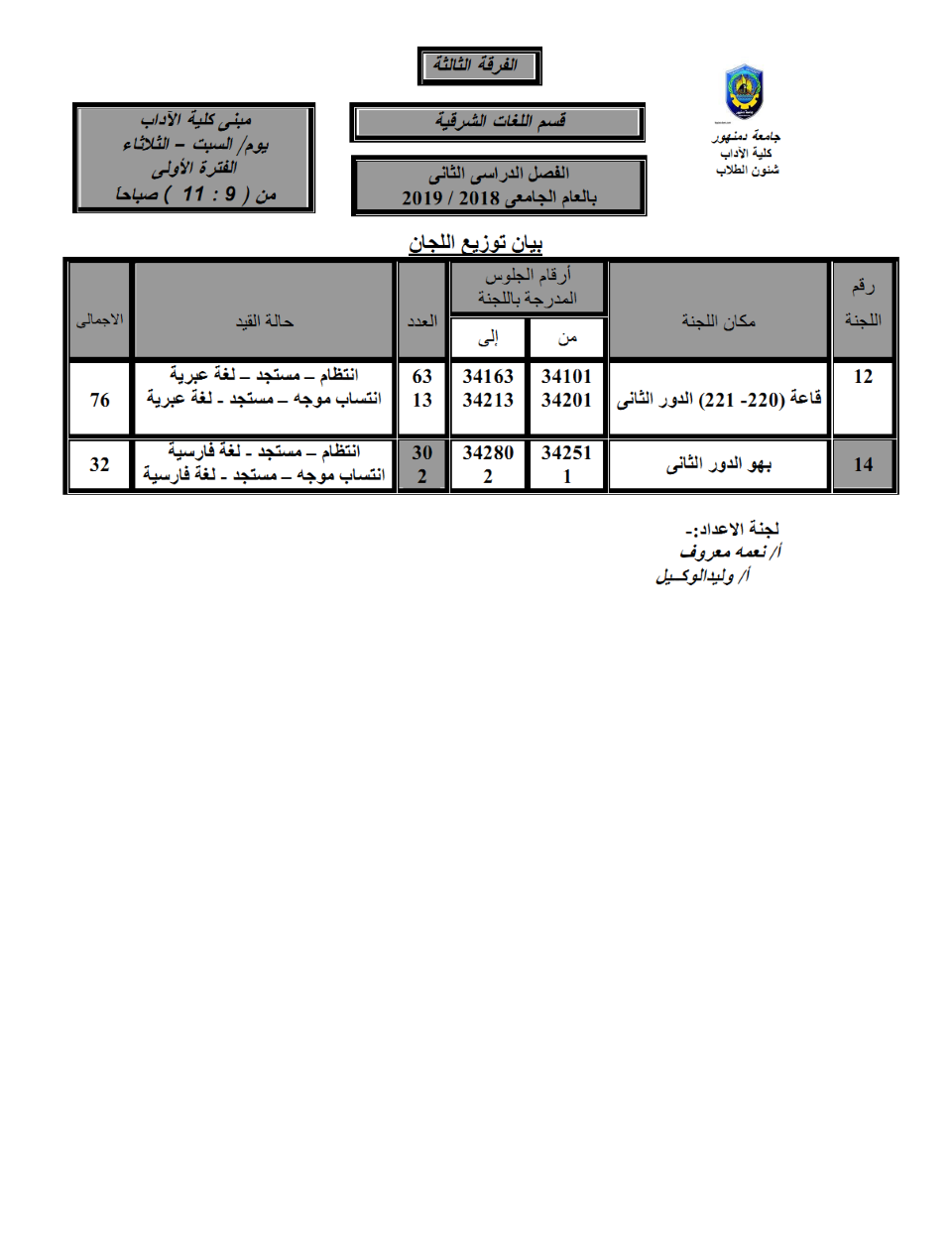 اعتماد نتيجة الفرقة الأولى لقسم اللغات الشرقية فصل دراسي أول 2025