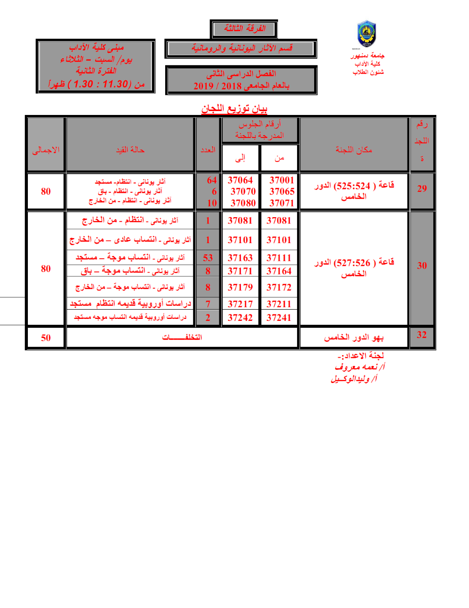 اعتماد نتيجة الفرقة الثانية والثالثة لقسم الآثار والدراسات اليونانية والرومانية فصل دراسي ثانى2024