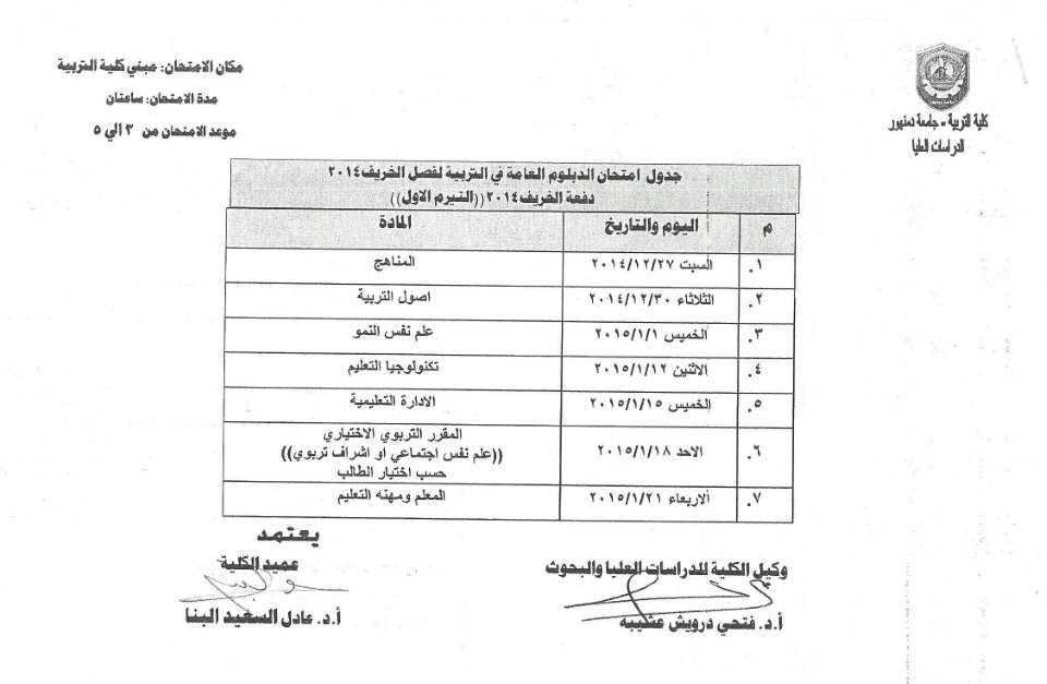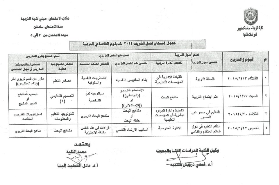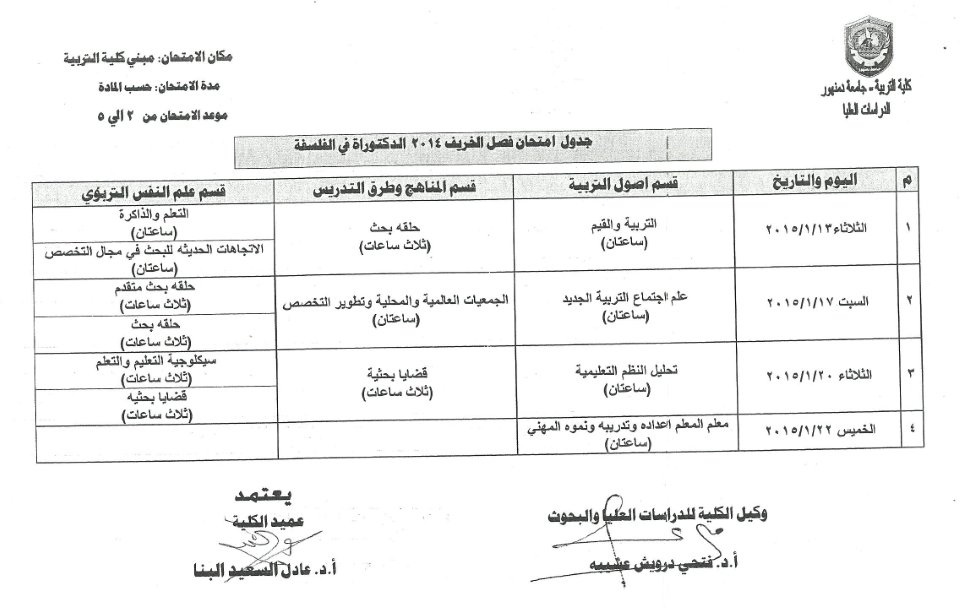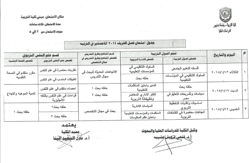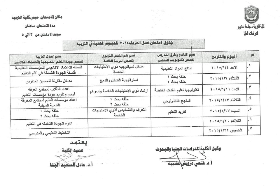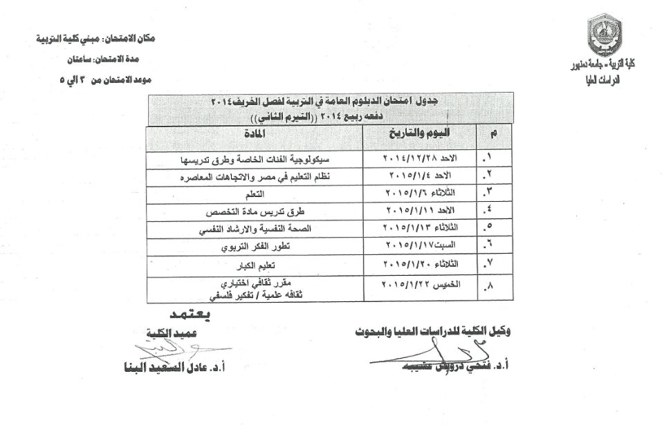 جدول امتحانات الدبلومات والماجستير والدكتوراه