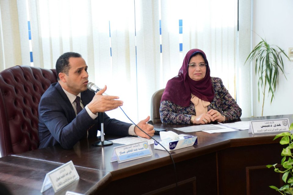 بحضور كل من الأستاذة الدكتورة / هدى محمد جمال الدين دعبيس (نائب رئيس الجامعة للدراسات العليا والبحوث)