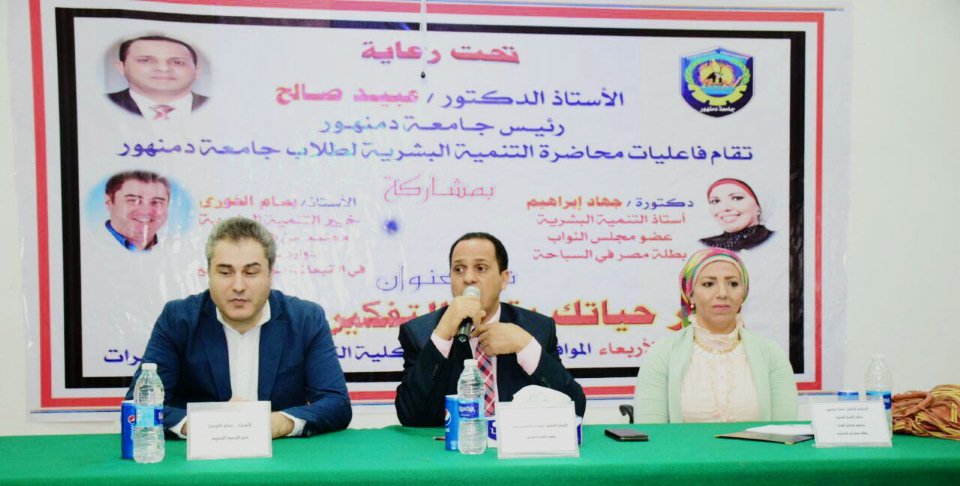 والمقامة تحت رعاية سيادته في رحاب كلية التربية، والتي يحاضر فيها الدكتورة / جهاد إبراهيم (خبيرة التنمية البشرية - وعضو مجلس النواب- وبطلة مصر في السباحة)