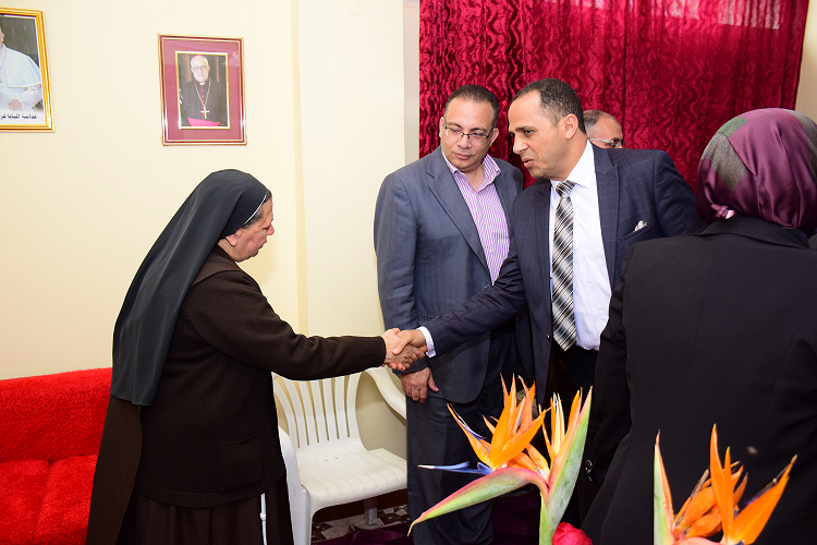ثم توجه رئيس الجامعة لزيارة الكنيسة الإنجيلية والكنيسة الكاثوليكية أيضا بميدان المحطة .