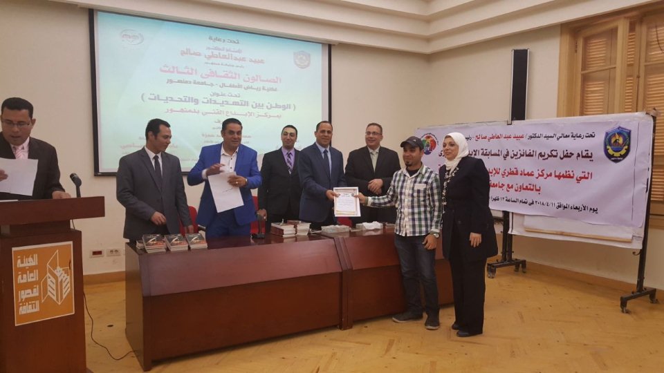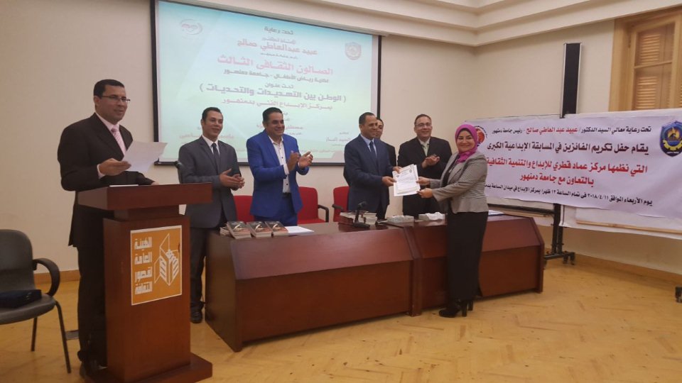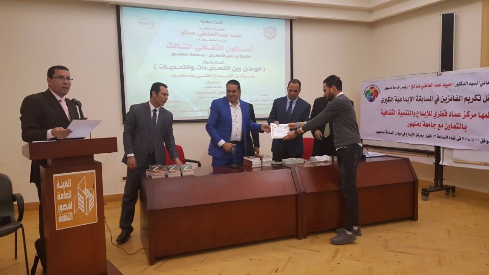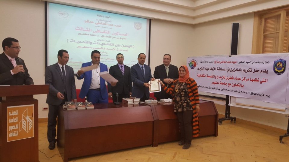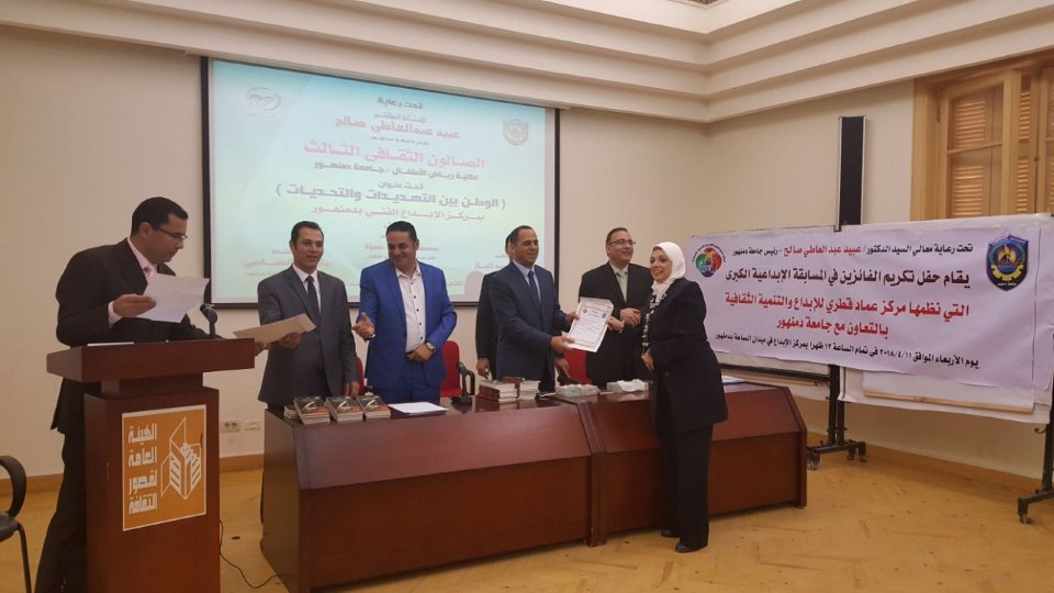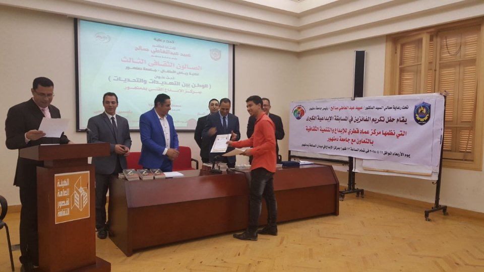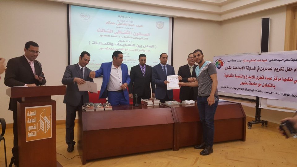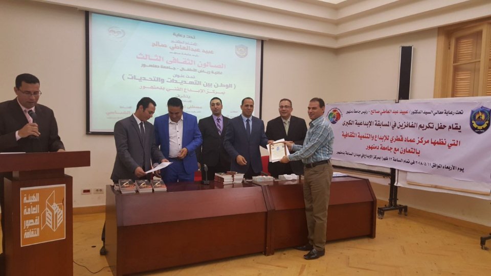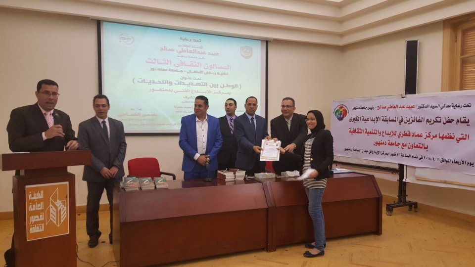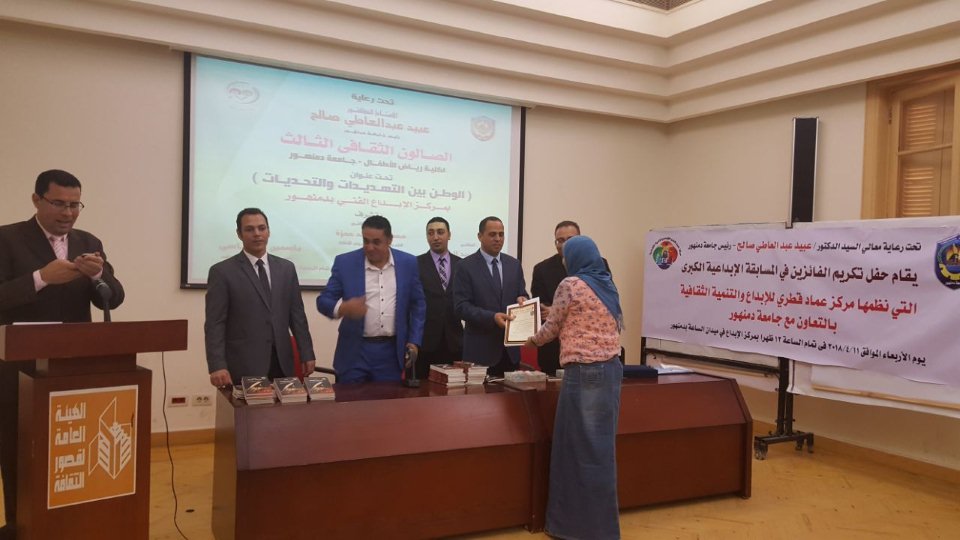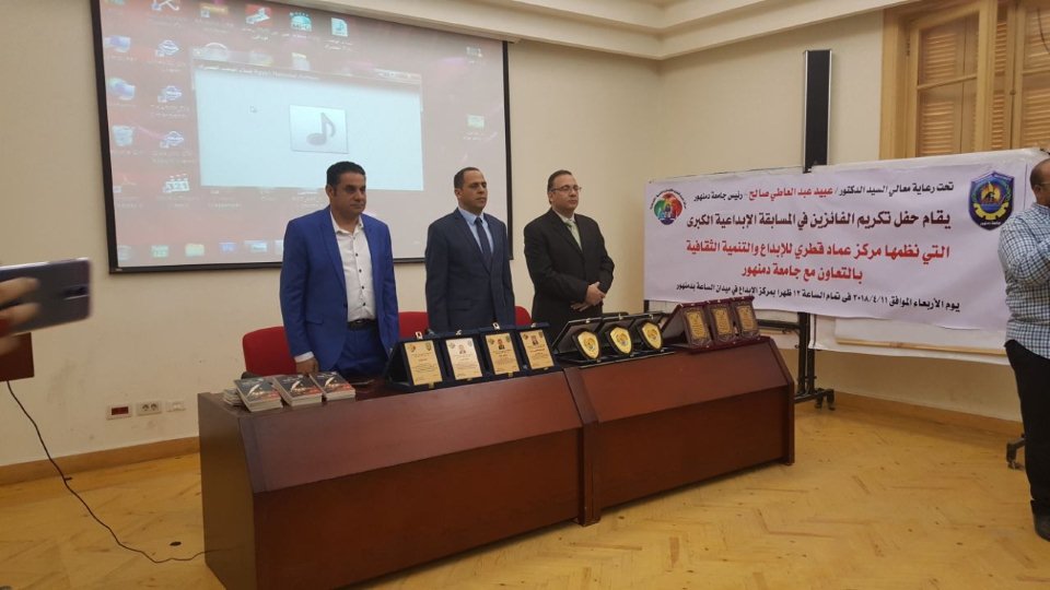 وذلك لتكريم الفائزين فى المسابقة الإبداعية الكبرى التى نظمها مركز عماد قطرى للإبداع والتنمية الثقافية بالتعاون مع جامعة دمنهور .