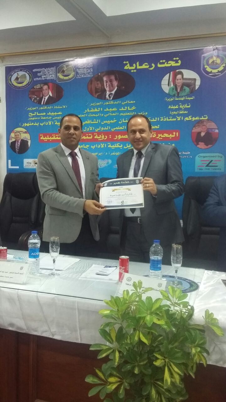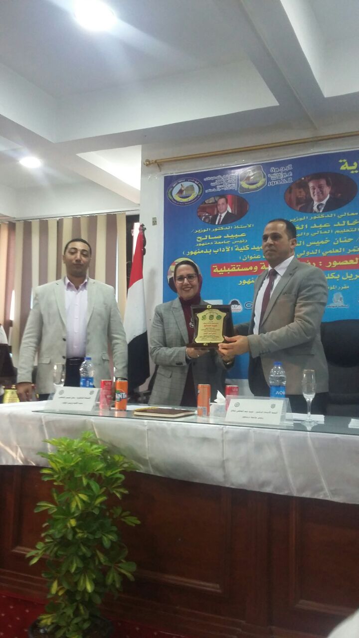 بإهداء درع المؤتمر الدولي الأول للأستاذ الدكتور / عبيد صالح - رئيس جامعة دمنهور