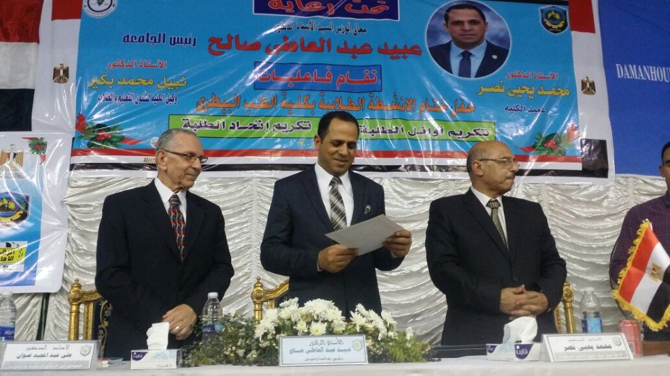 رئيس جامعة دمنهور يطلق حملة الميثاق اﻷخلاقى للطالب الجامعى فى حفل ختام الأنشطة الطلابية بكلية الطب البيطرى