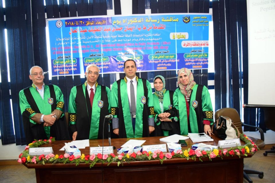 مناقشة رسالة دكتوراة الفلسفة فى العلوم الطبية البيطرية للباحثة / إيمان حمدى عبد اللطيف - المدرس المساعد بقسم الرقابة الصحية علي التغذيه بكلية الطب البيطرى جامعة دمنهور