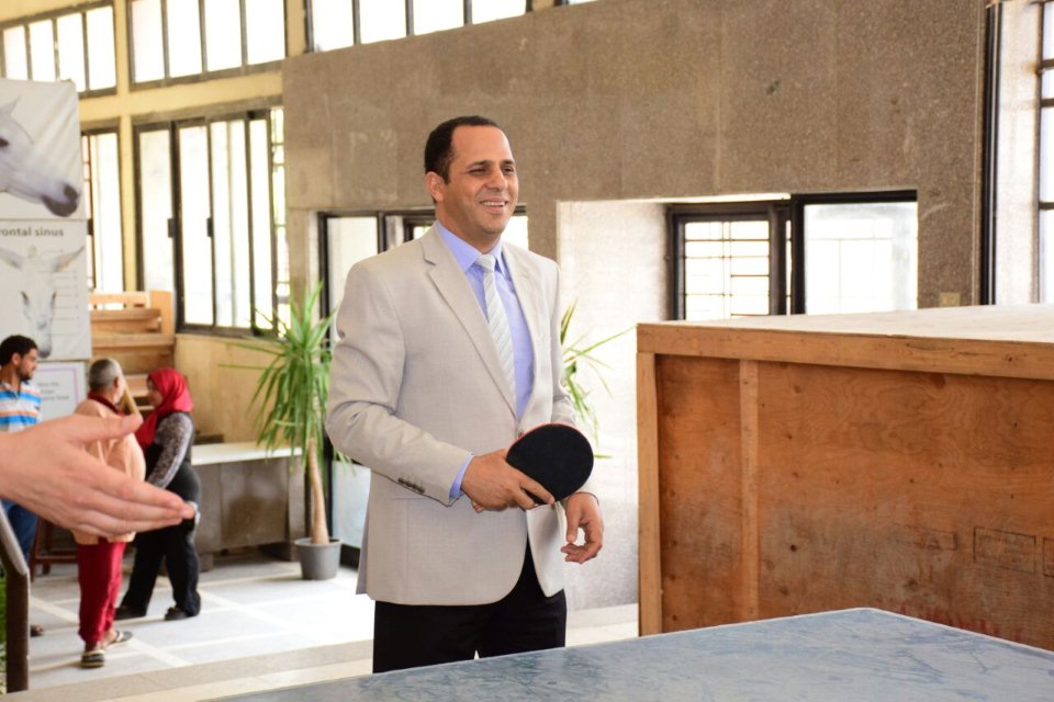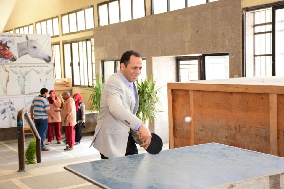 وفى نهاية الزيارة شارك رئيس الجامعة أبناءه الطلاب الطلاب اثناء لعبهم رياضة تنس الطاولة