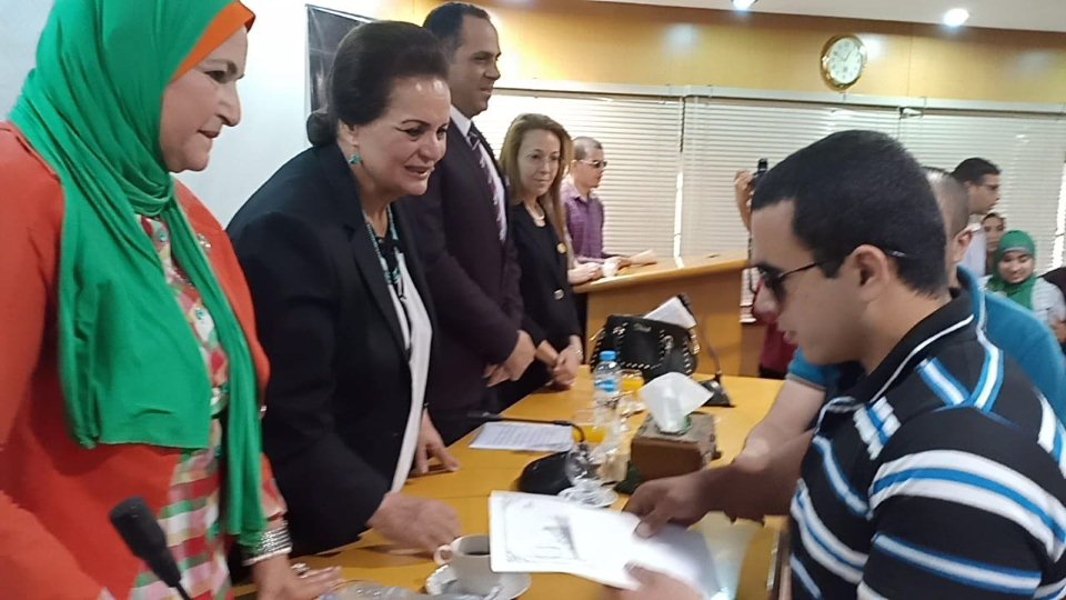 والأستاذة / منال الصافى - مقرر المجلس الأعلى لشئون الإعاقة ، والأستاذ / علاء برهام - مدير الشؤون القضائية بمديرية التربية والتعليم والنائبة / نجوى خلف - مسؤول شؤون الإعاقة