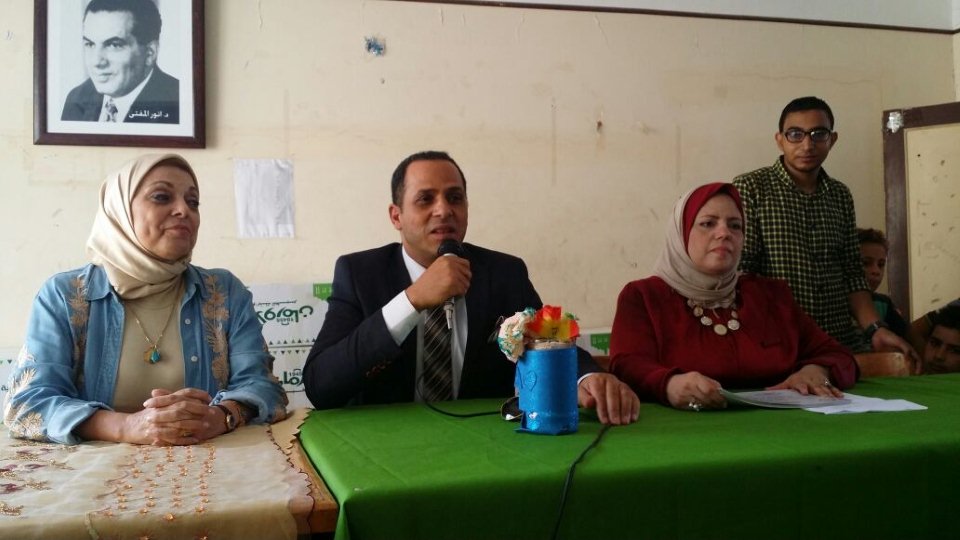 والأستاذة الدكتورة / مايسة المفتي (المسئول عن مشروع مصر القومي للقضاء على الأمية والأستاذة بجامعة عين شمس) ورئيس مجلس إدارة جمعية النهوض بالقرى
