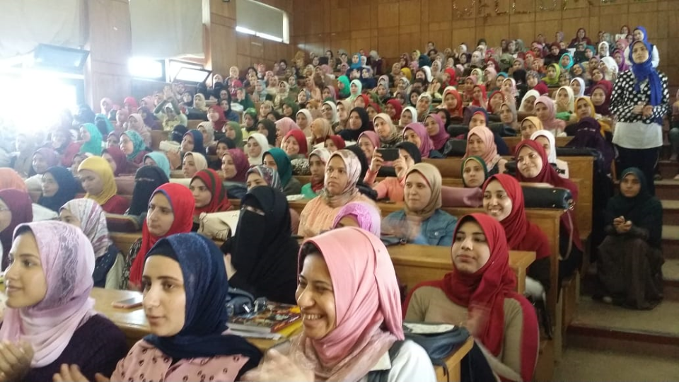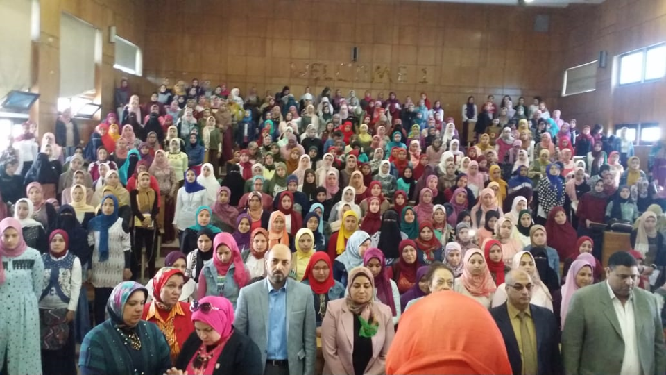 بمدرج الشهيد رامى حسنين بحضور الأستاذ الدكتور / غادة غتورى - عميد كلية التربية و الأستاذ الدكتور / محمد مصطفى محمد - خبير السموم والمخدرات بوزارة العدل