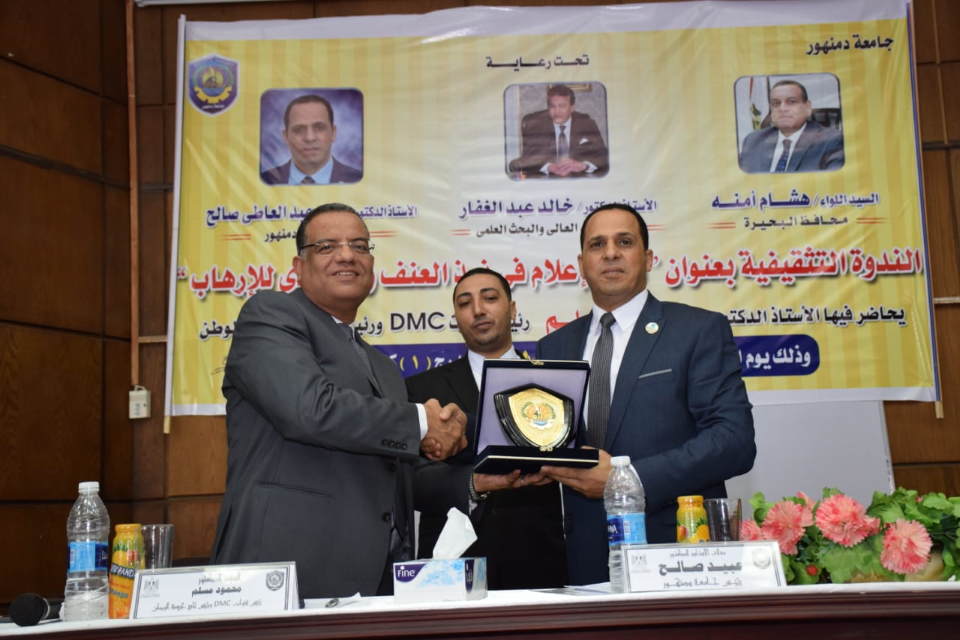 إفتتح السيد الأستاذ الدكتور / عبيد صالح - رئيس جامعة دمنهور ندوة تثقيفية بعنوان دور الإعلام في نبذ العنف والتصدي للإرهاب