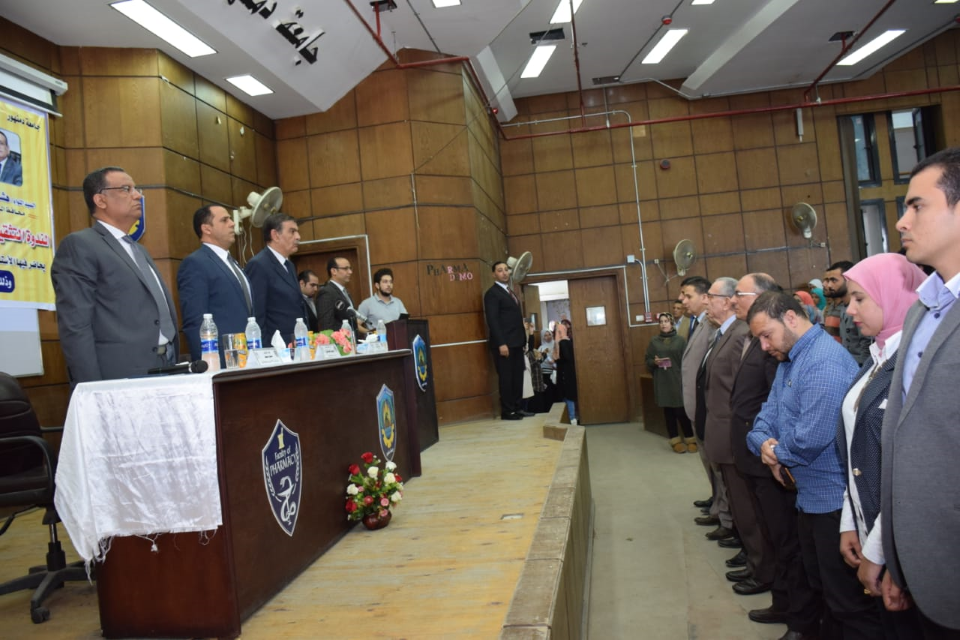 بمدرج بمبنى كلية الصيدلة ويحاضر بالندوة الأستاذ الدكتور / محمود مسلم - رئيس قنوات dmc ورئيس تحرير جريدة الوطن