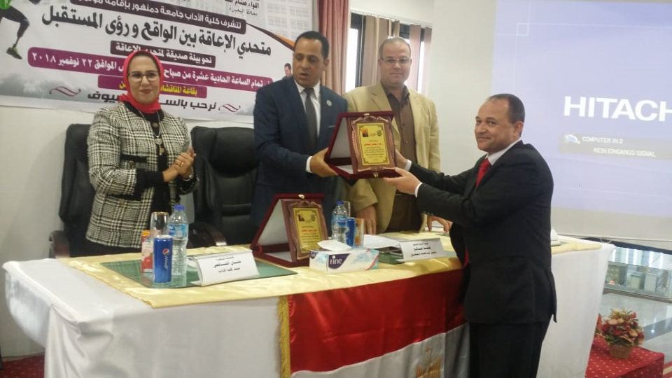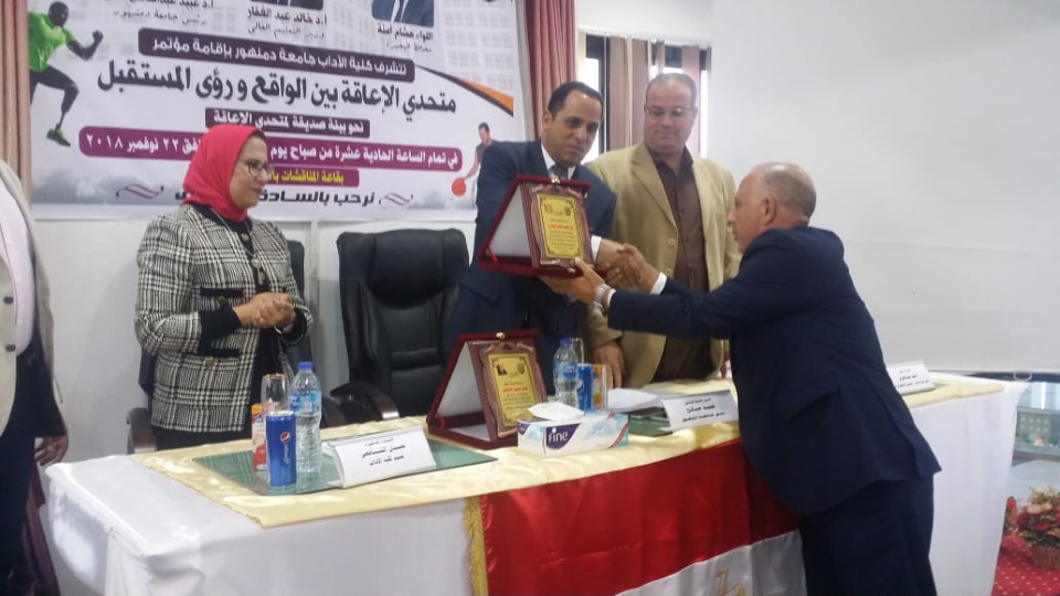 المؤتمر الأول متحدي الإعاقة بين الواقع ورؤى المستقبل نحو بيئة صديقة لمتحدي الإعاقة بكلية الآداب بقاعة المناقشات بغرض تبادل الخبرات والإطلاع على أحدث البرامج